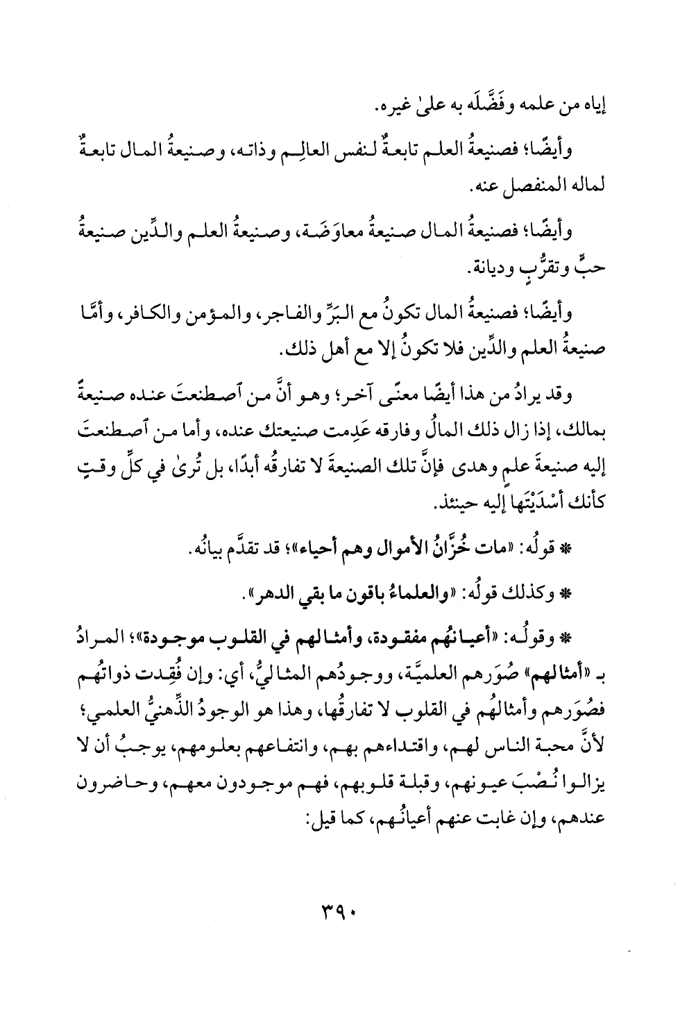 وأيضا؛ فصنيعة العلم تابعة لنفس العالم وذاته، وصنيعة المال تابعة