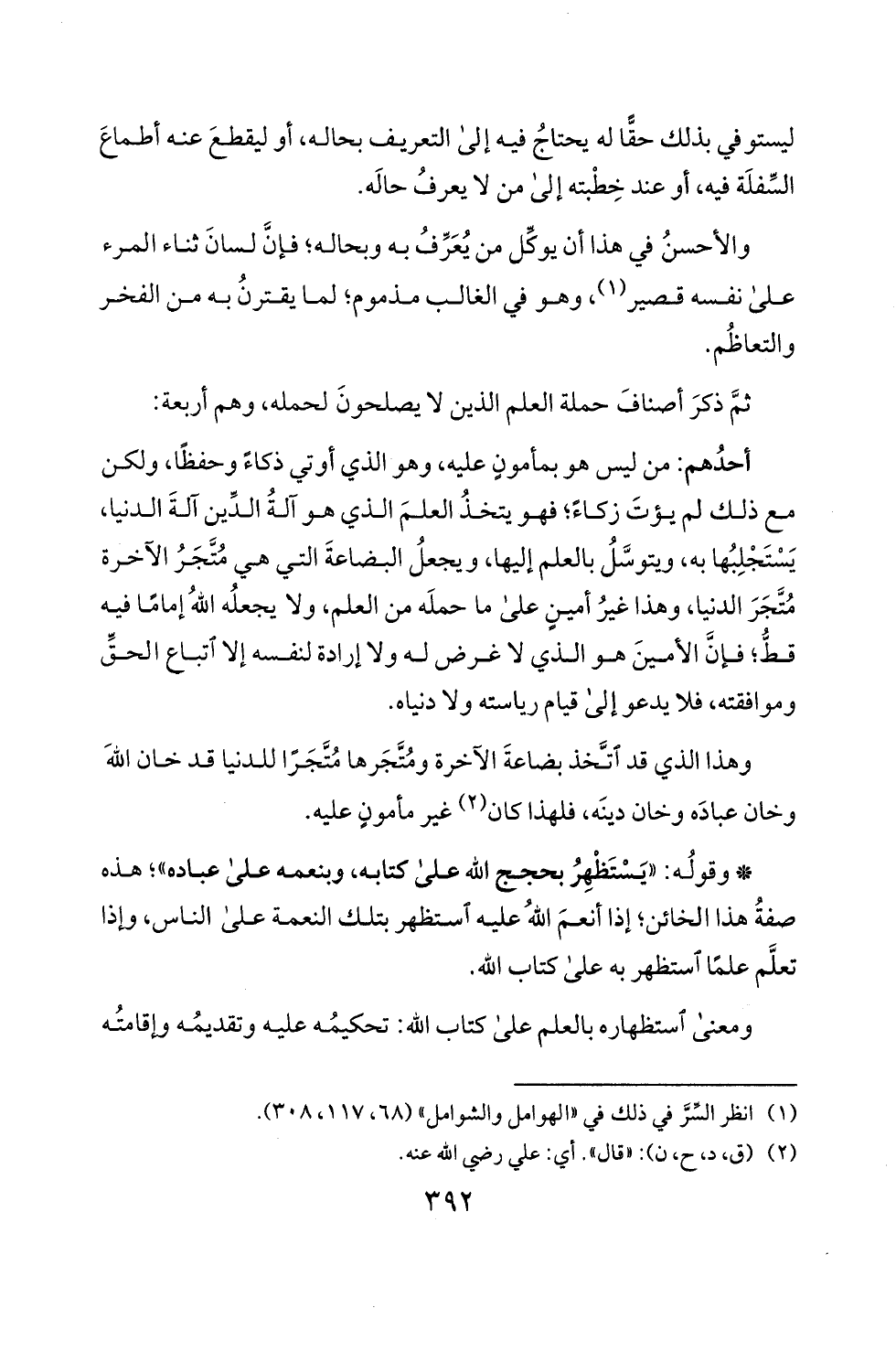 ثم ذكر أصناف حملة العلم الذين لا يصلحون لحمله، وهم أربعة: