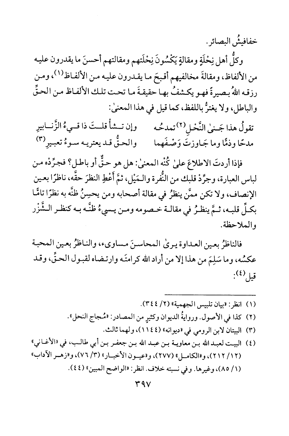(3) البيتان لابن الرومي في "ديوانه " (4 4 1 1)، ولهما ثالث.