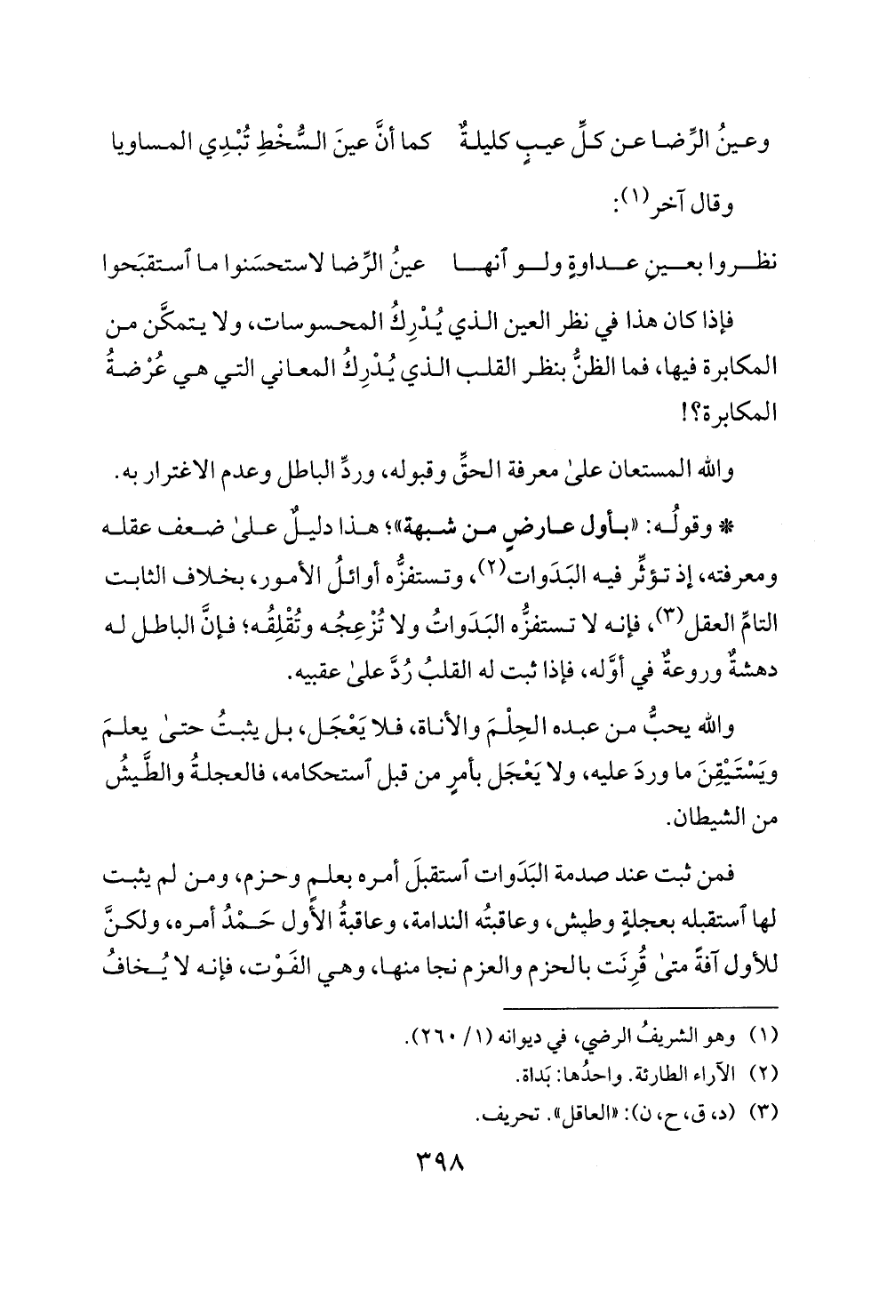 (2) ا لآراء الطارئة. وا حدها: بداة.