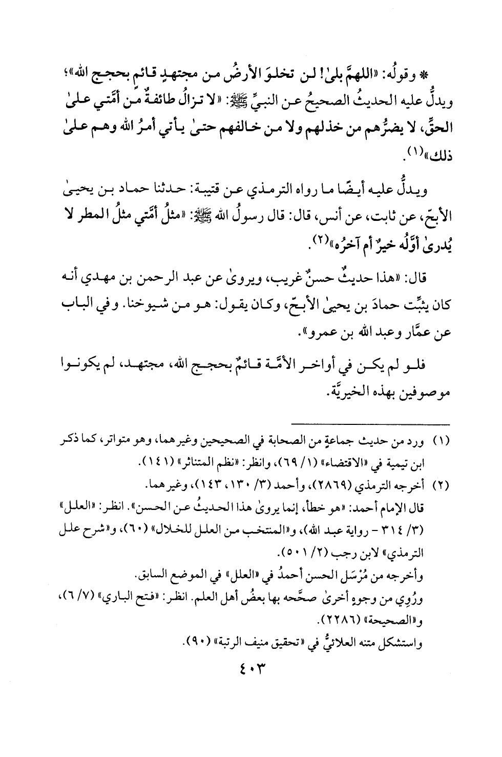 ويدذ عليه الحديث الصحيح عن النبيئ! يم: "لا تزال طائفة من أمتي على