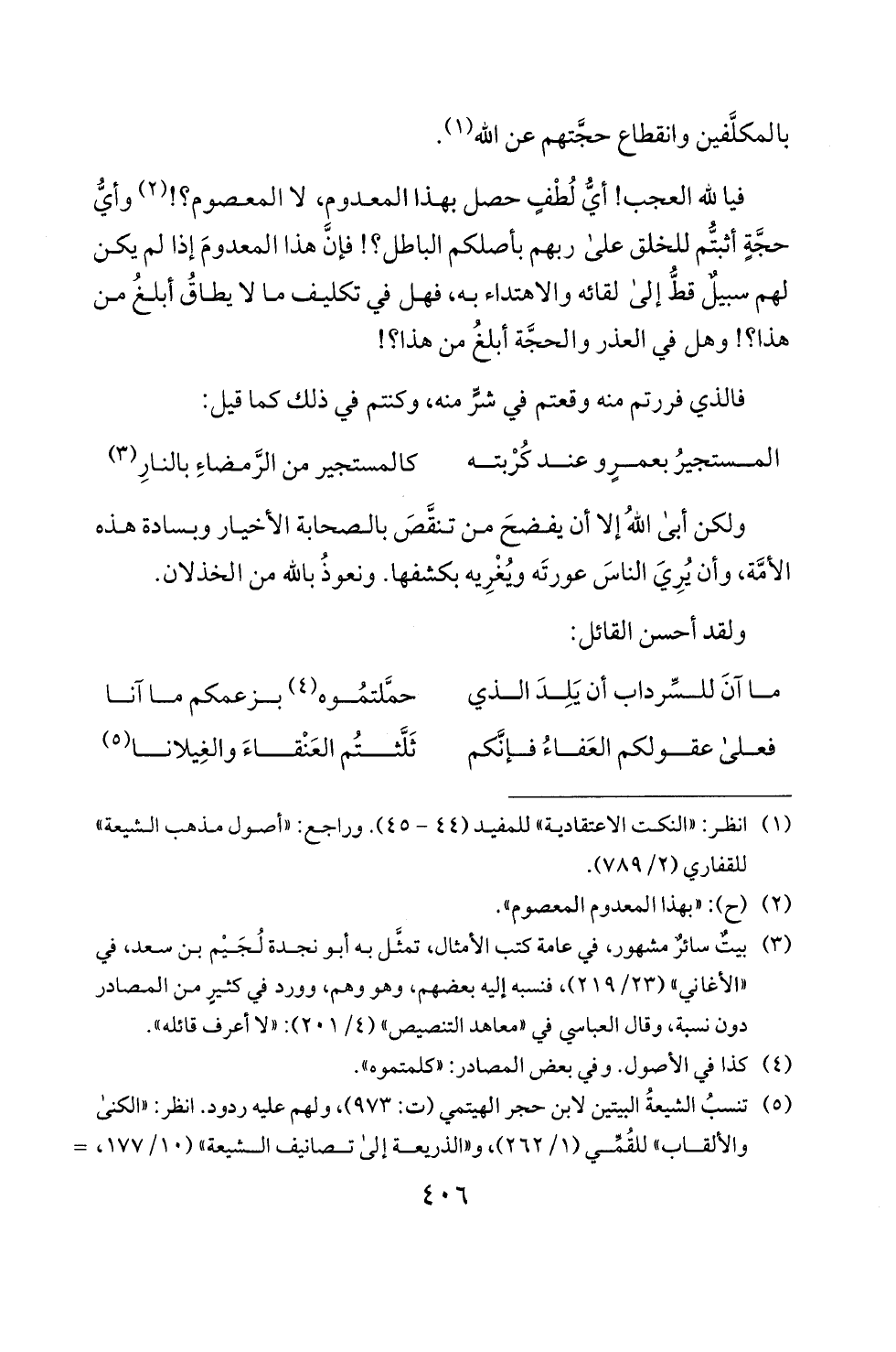 فيا لله العجب! أي لطف حصل بهذا المعدوم، لا المعصوم؟! (2) واي
