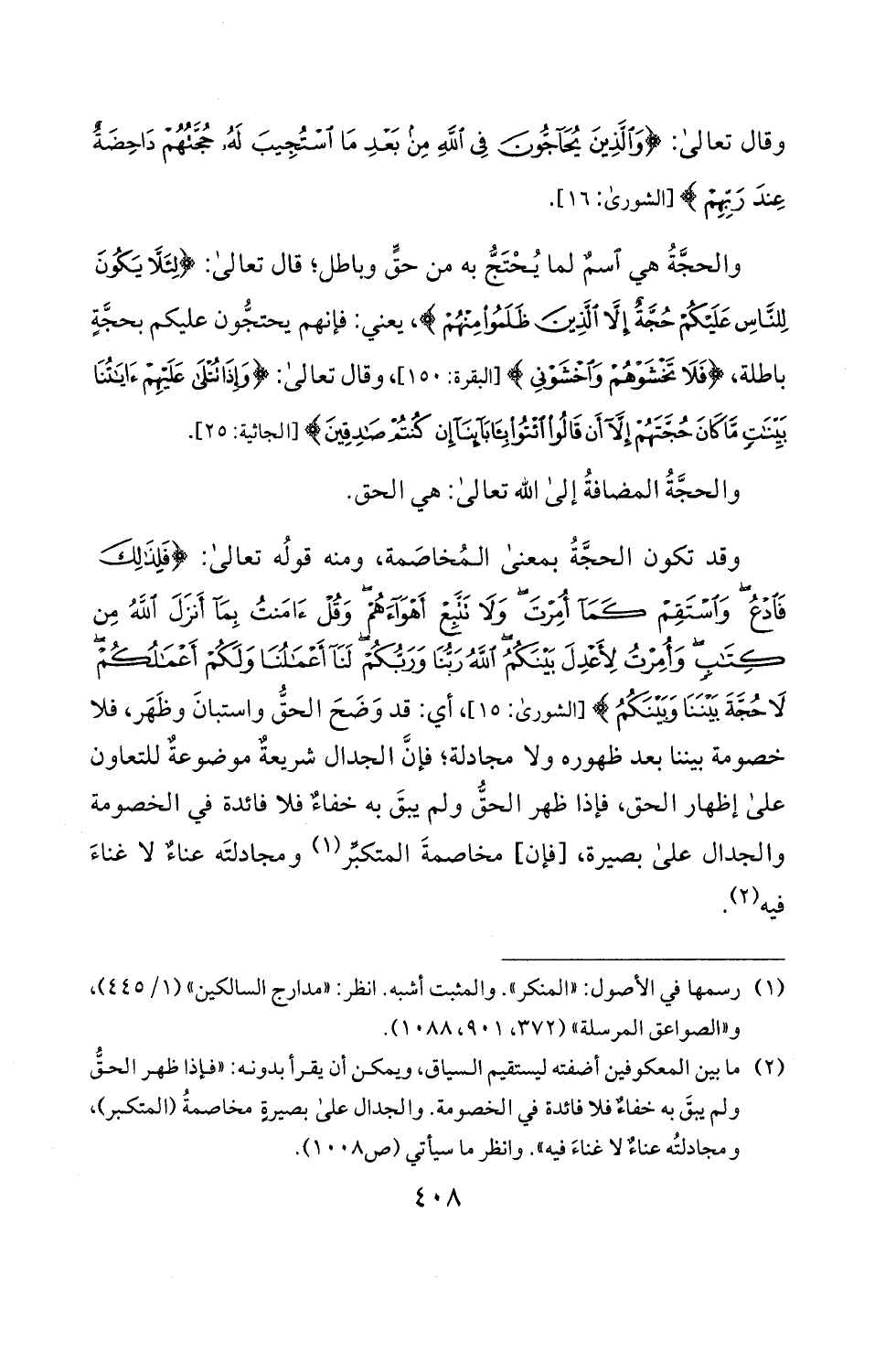 وقد تكون الحجة بمعنى المخاصمة، ومنه قوله تعالى: <فلذلف