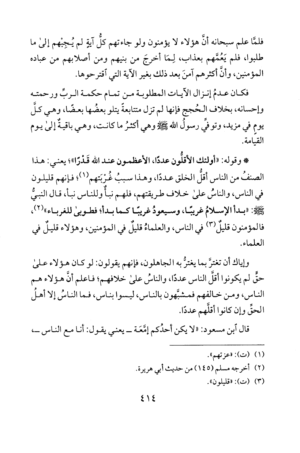 فالمؤمنون قليل (3) في الناس، والعلماء قليل في المؤمنين، وهؤلاء قليل في