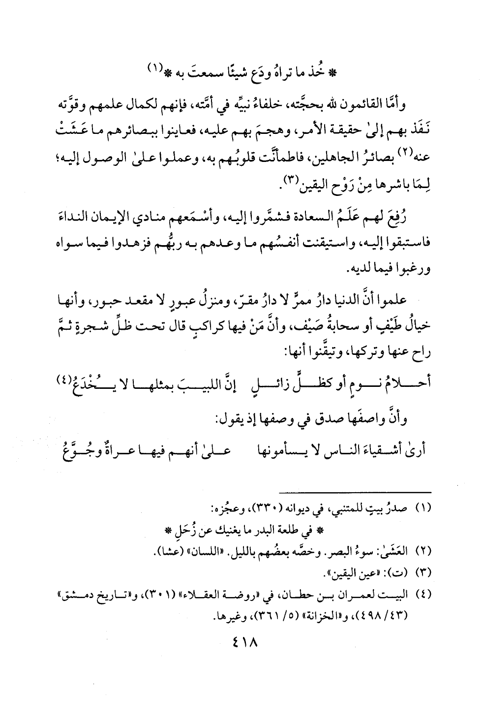 (4) البيت لعمران بن حطان، في "روضة العقلاء" (1 0 3)، و"تاريخ دمشق"