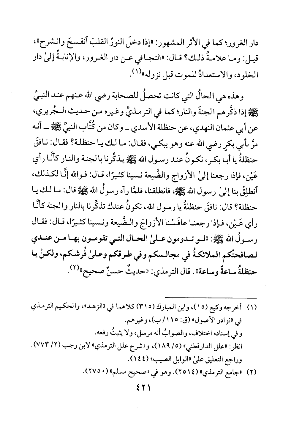 حنظلة ساعة وساعة ". قال الترمذي: "حديث حسن صحيح " (2).