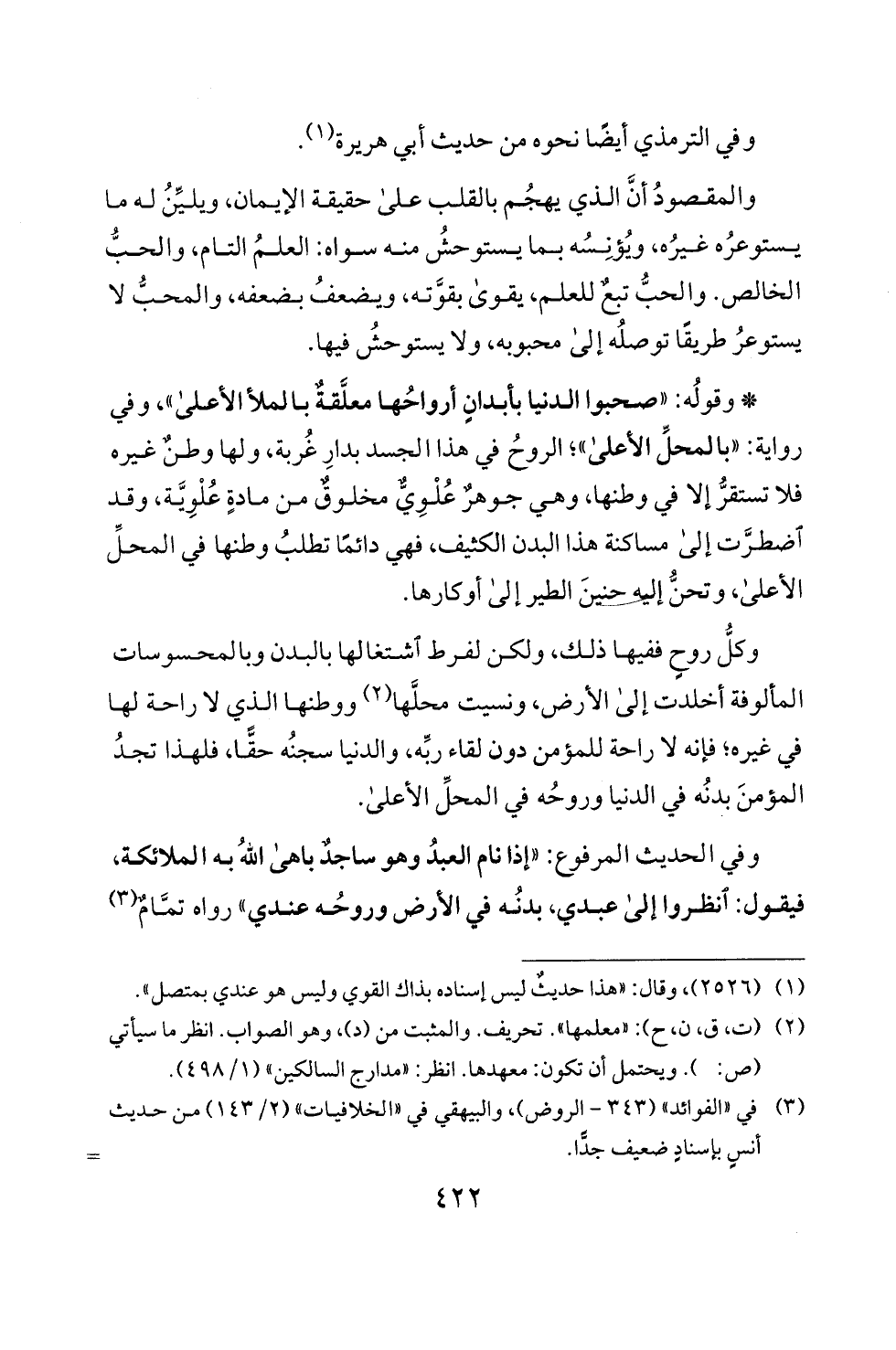 فيقول: انظروا الى عبدي، بدنه في الأرض وروحه عندي " رواه تمام (3)