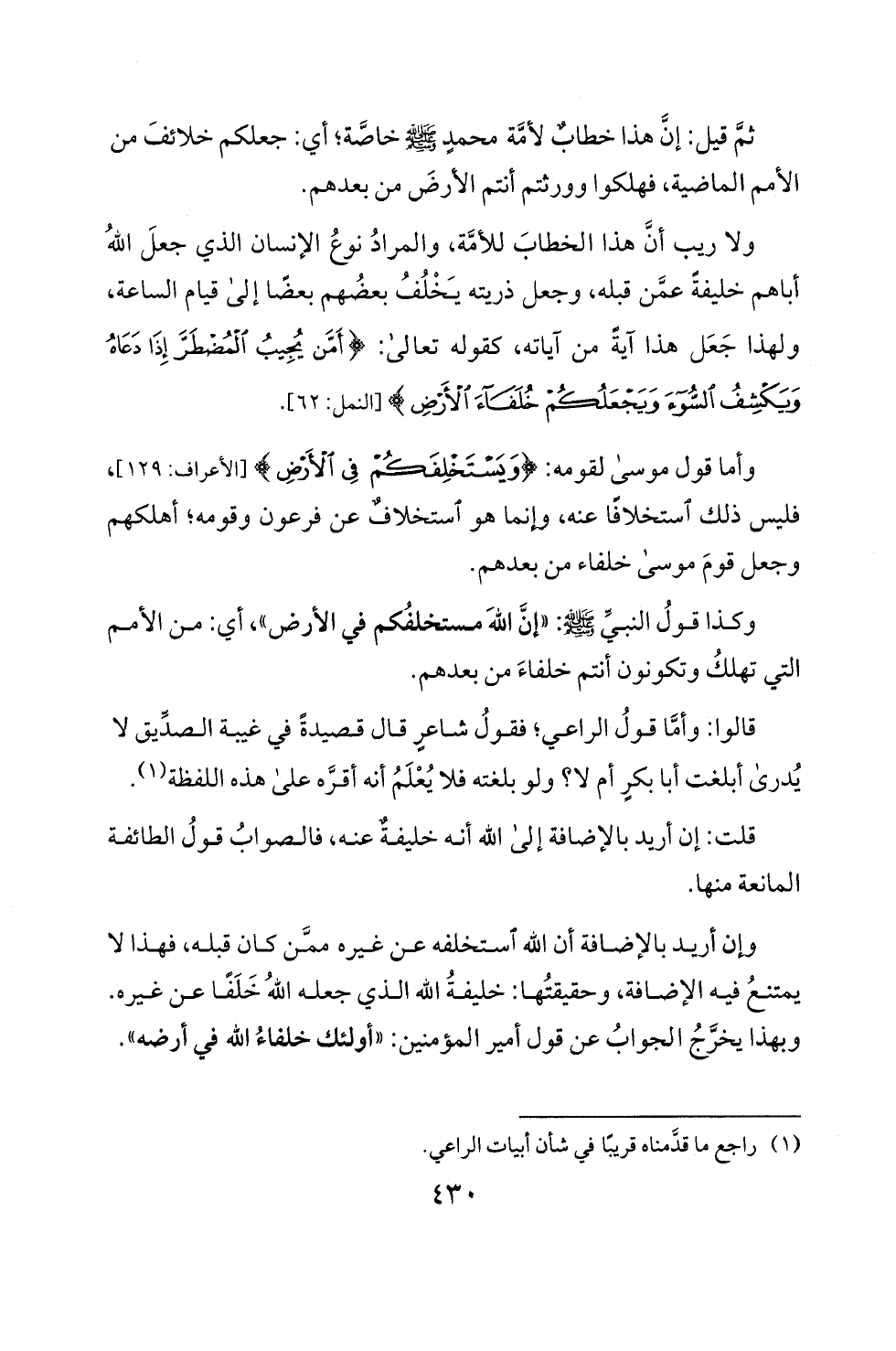 وبهذا يخرج ا لجواب عن قول امير المؤمنين: "اولنك خلفاء الله في ارضه) ".
