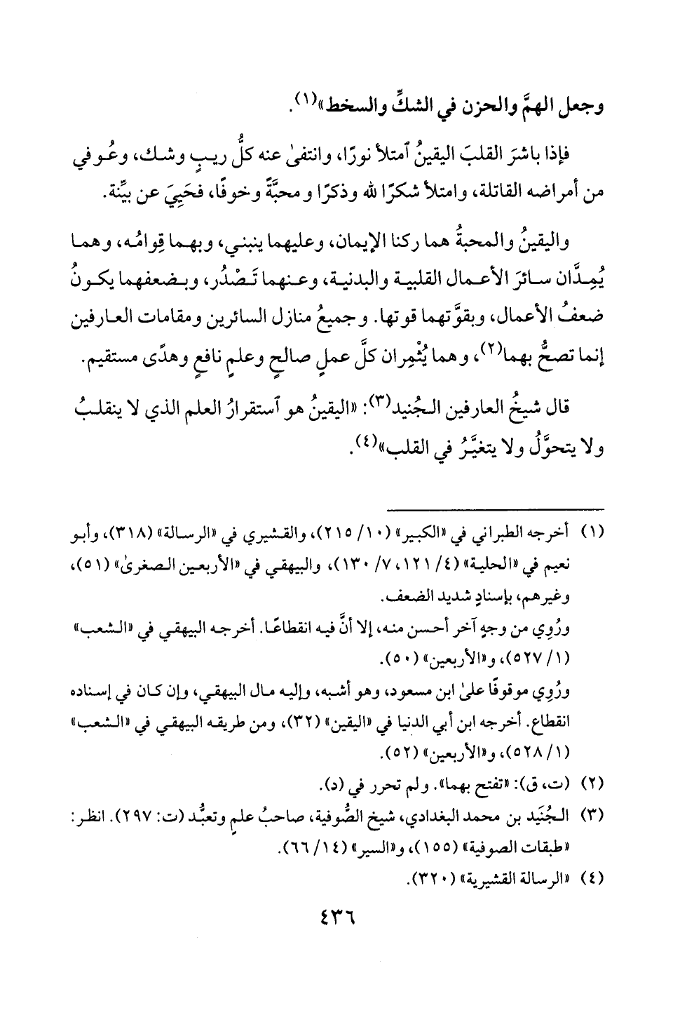 قال شيخ العارفين الجنيد (3): " اليقين هو آستقرار العلم الذي لا ينقلب