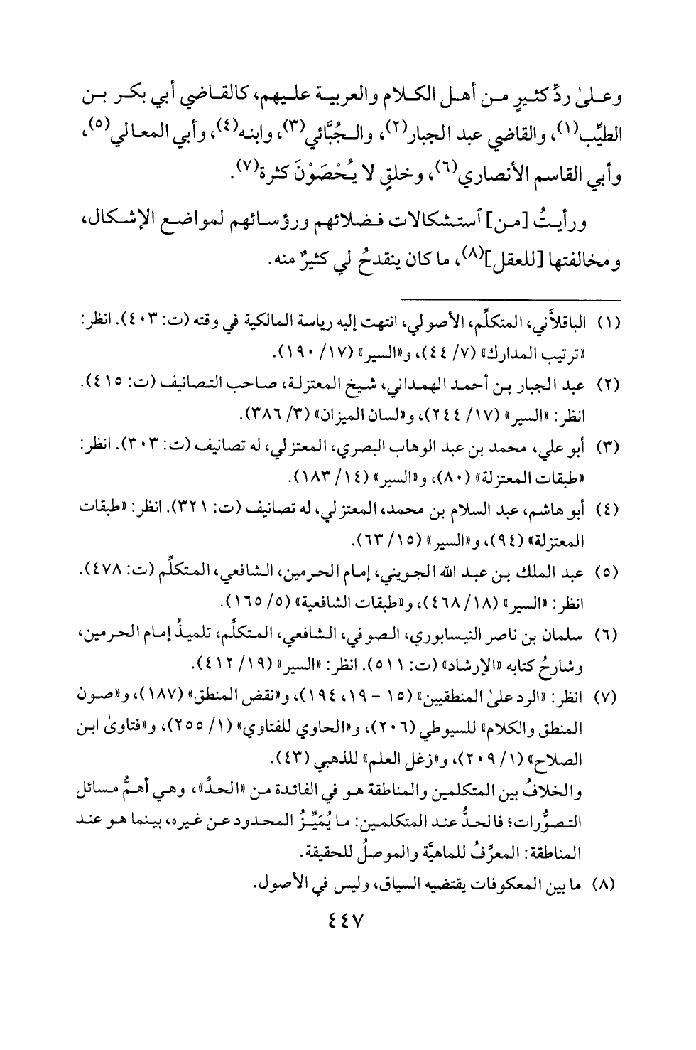 (5) عبد الملك بن عبد الله الجويني، إمام الحرمين، الشافعي، المتكلم (ت: 478).