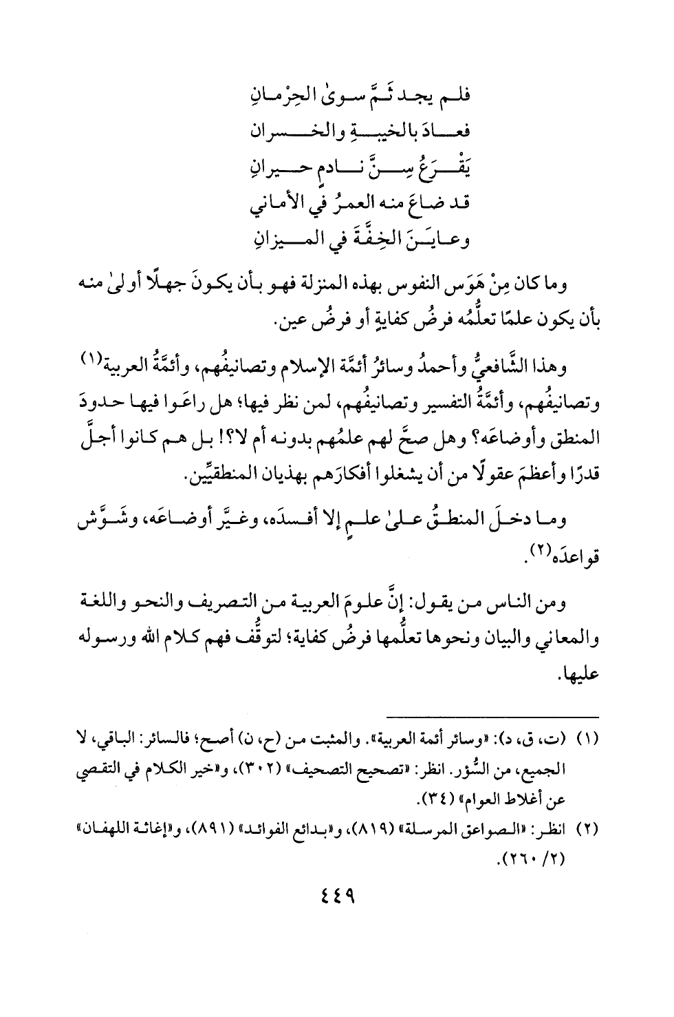 وهذا الشافعي وأ حمد وسائر أئمة الاسلام وتصانيفهم، وأئمة العربية (1)