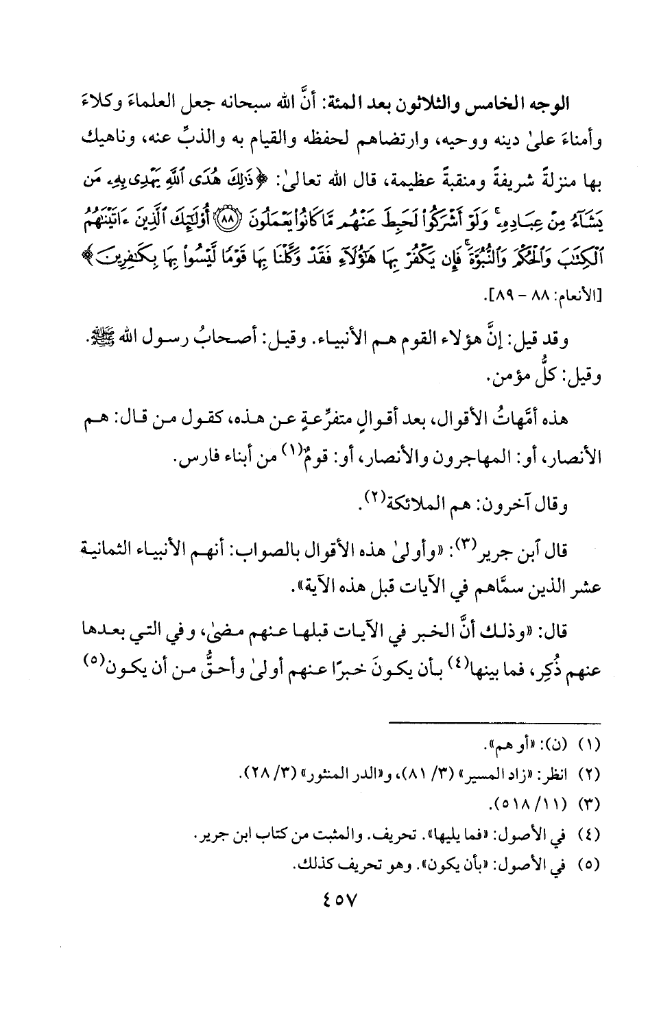 قال ابن جرير (3): "و و لى هذه الاقوال بالصواب: انهم الانبياء الثمانية