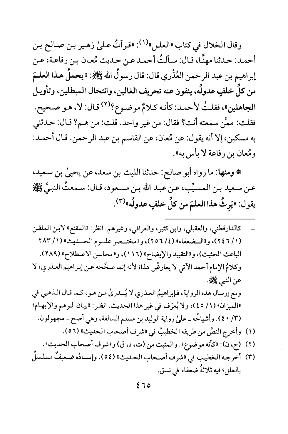 الجاهلين "، فقلت لاحمد: كانه كلام موضوع؟ (2) قال: لا، هو صحيح.