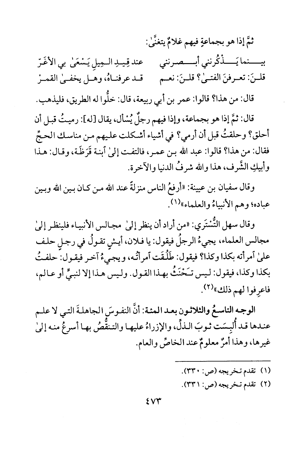 قال: من هذا؟ قالوا: عمر بن أبي ربيعة، قال: خلوا له الطريق، فليذهب.