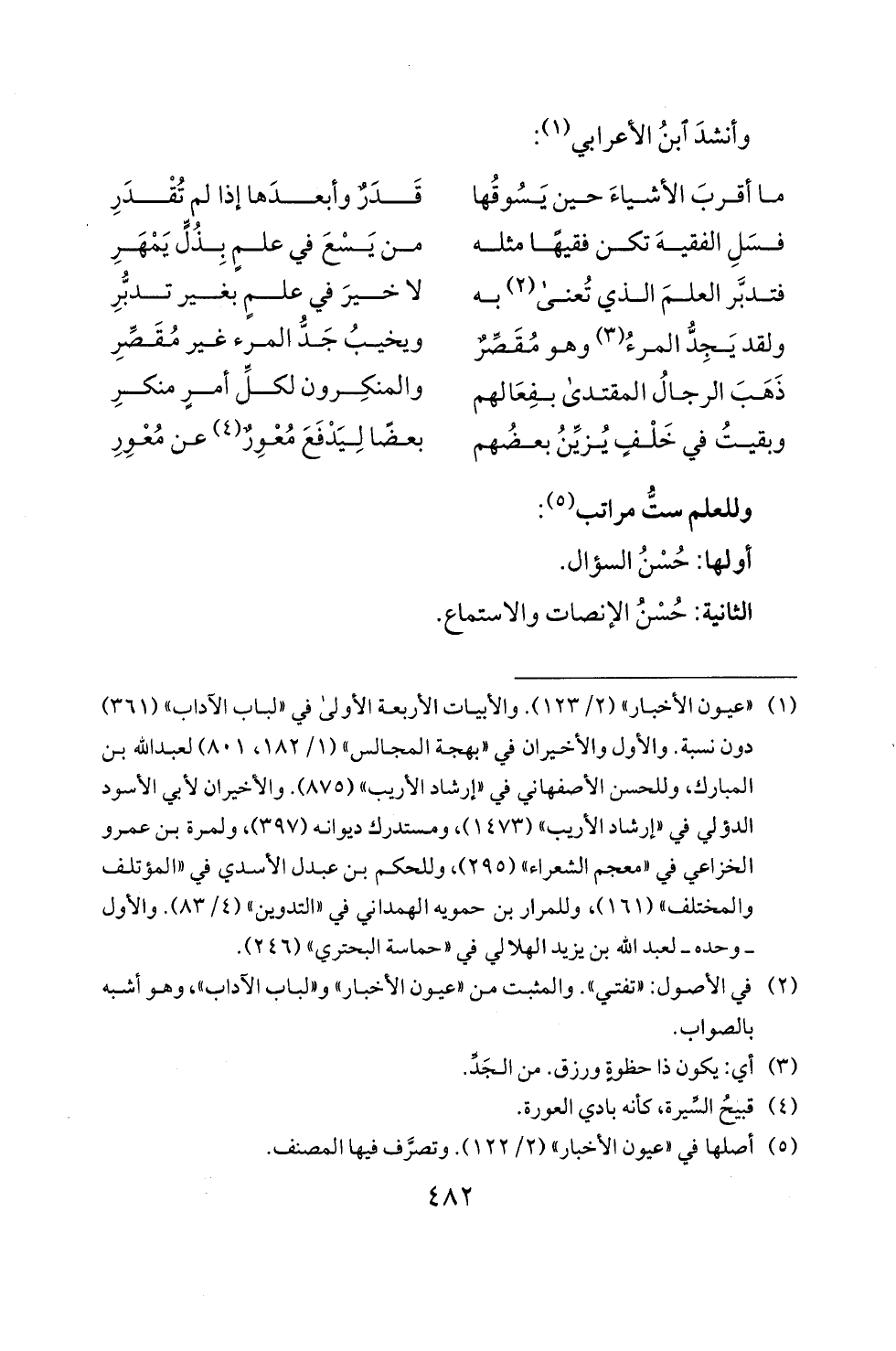 وللعلم ست مراتب (5):