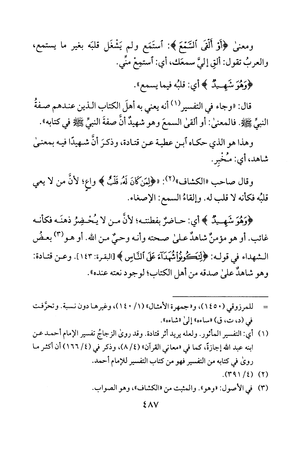 ومعنى <أو ألتى لشئع): ستمع ولم يشغل قلبه بغير ما يستمع،