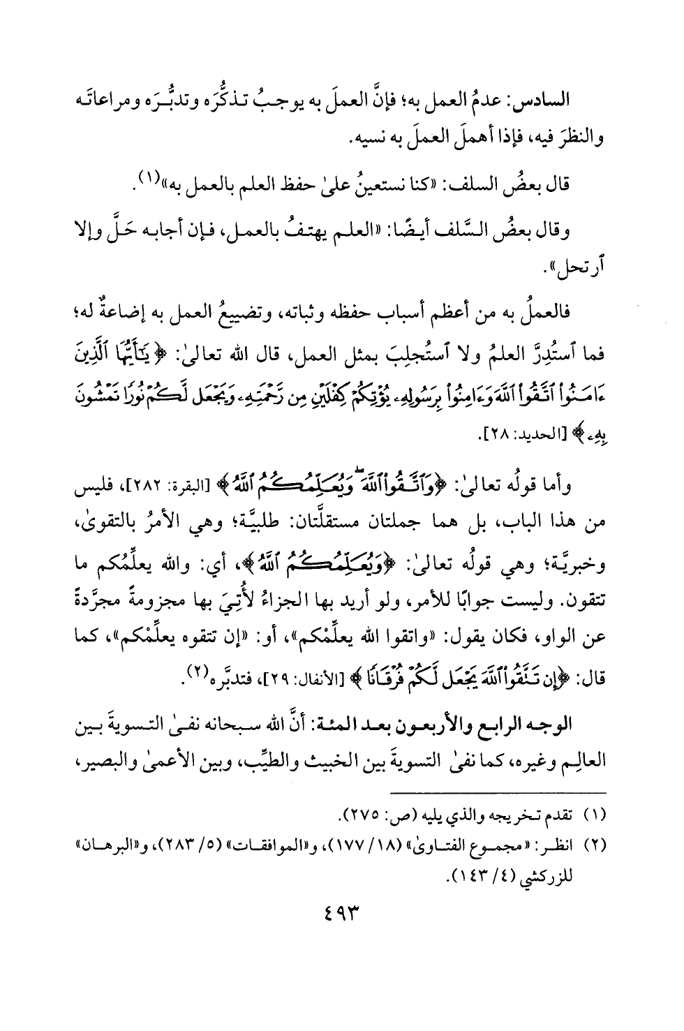 قال بعض السلف: "كنا نستعين على حفظ العلم بالعمل به" (1).