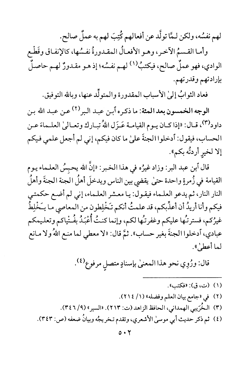 قال آبن عبد البر: وزاد غيره في هذا الخبر: "إن الله يحبس العلماء يوم
