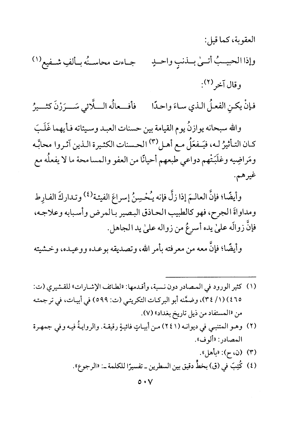 وأيضا؛ فإن العالم إذا زل فانه يحسن إسراع الفيئة (4) وتدارك الفارط