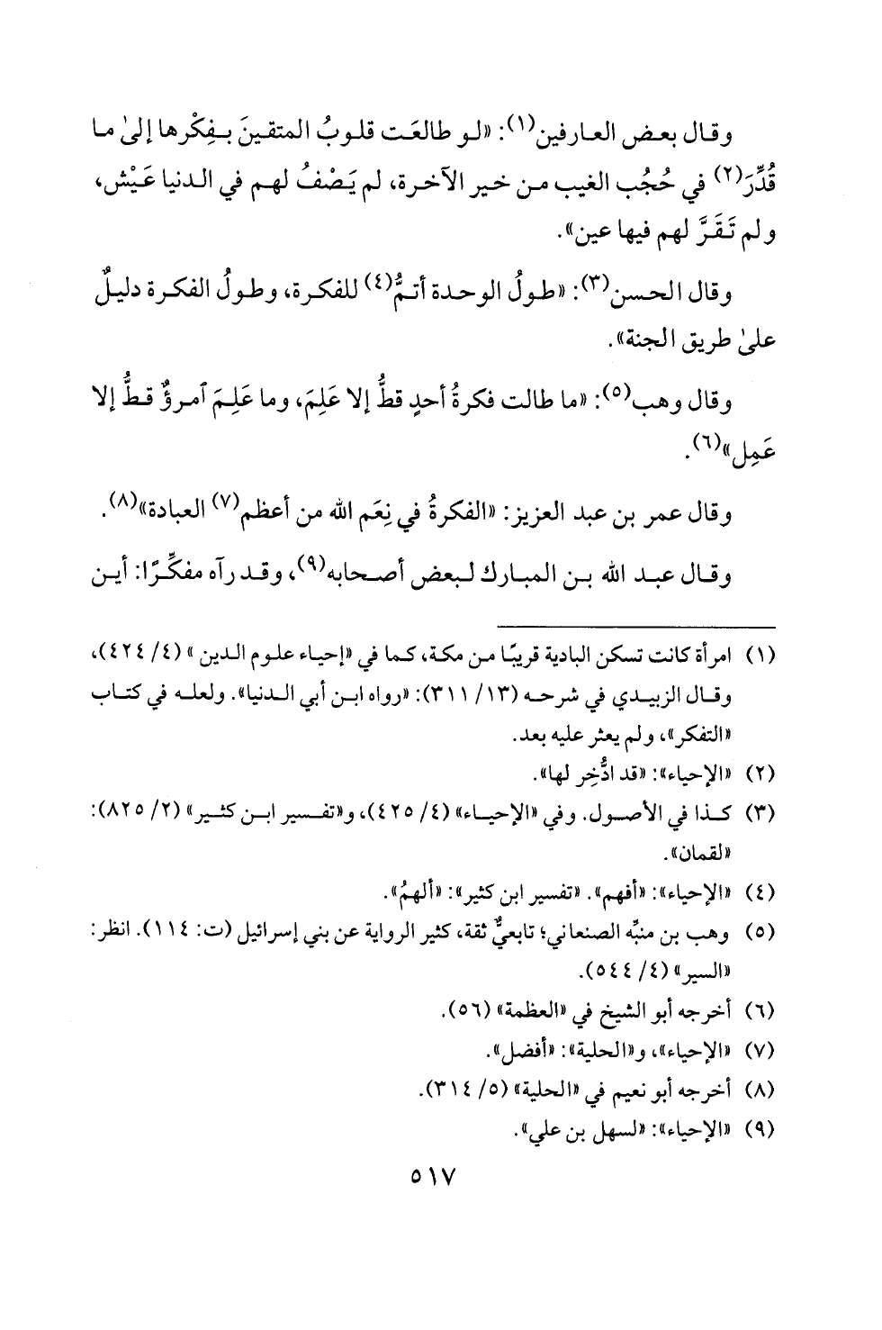 وقال وهب (5): "ما طالت فكرة أحد قط إلا علم، وما علم امرو قط إلا