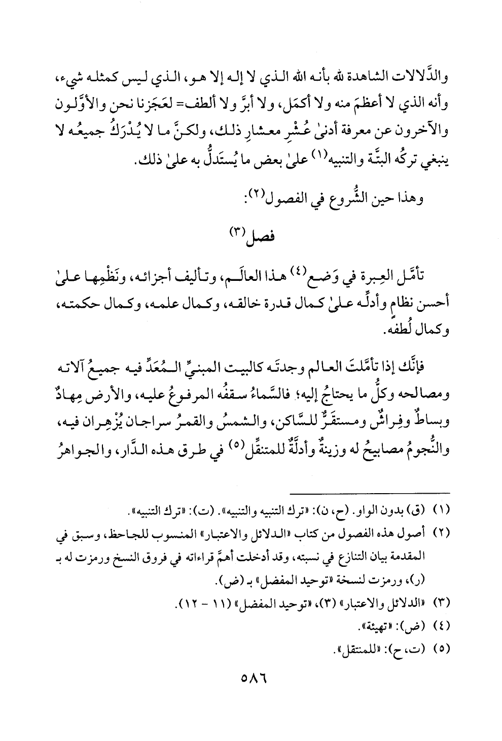 (3) "الدلاتل والاعتبار" (3)، " توحيد المفضل " (1 1 - 2 1).