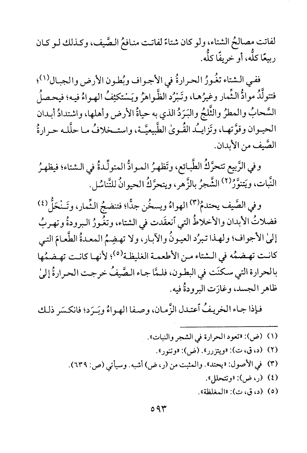 ففي الشتاء تغور ا لحرارة في الاجواف وبطون الارض وا لجبال (1)؛