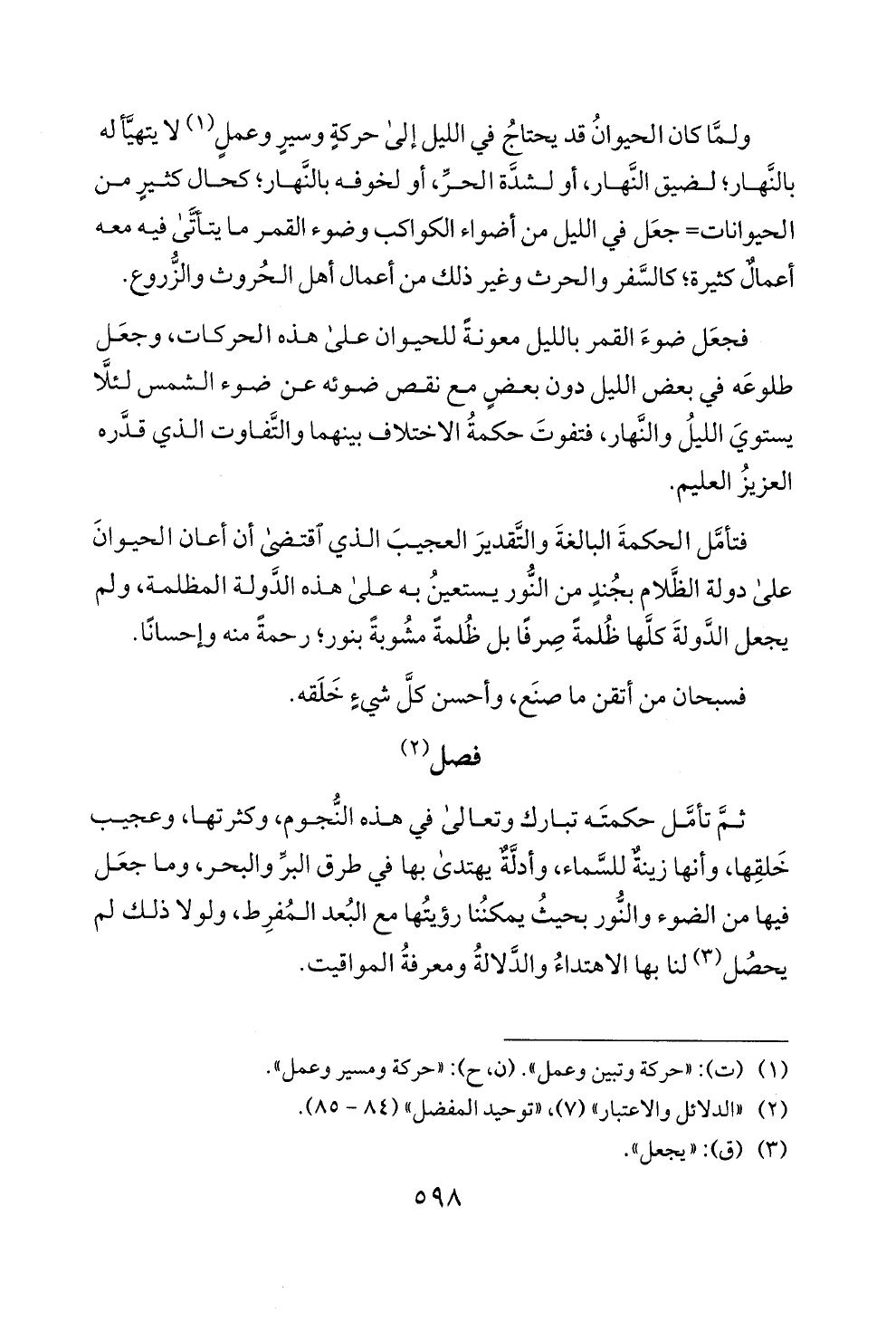 (2) "الدلائل والاعتبار" (7)، " توحيد المفضل " (84 - 85).