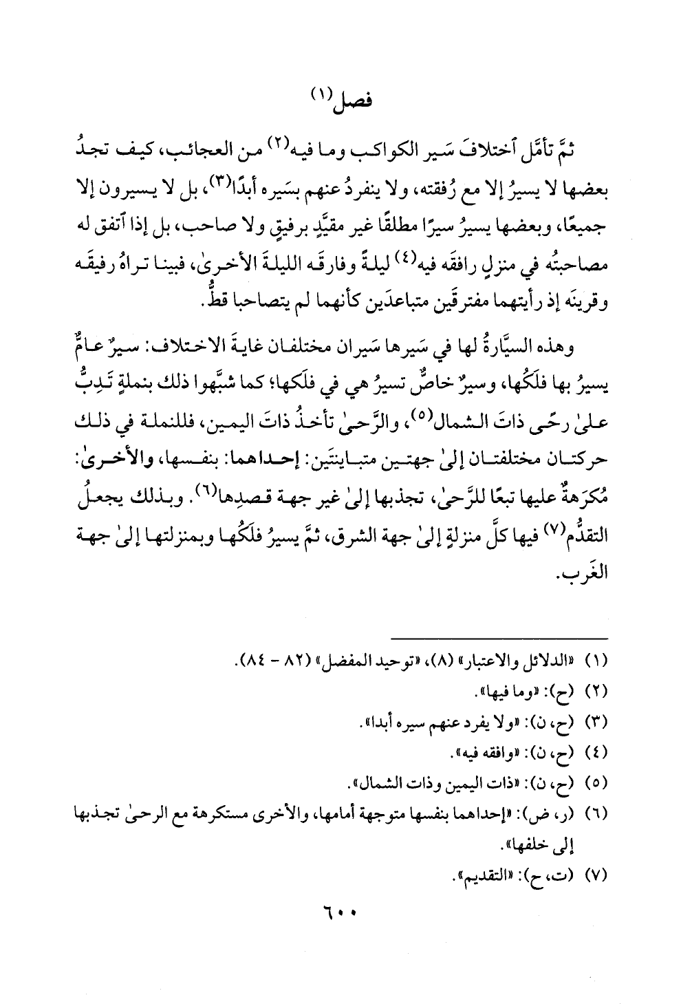ثم تامل اختلاف سير الكواكب وما فيه (2) من العجائب، كيف تجد