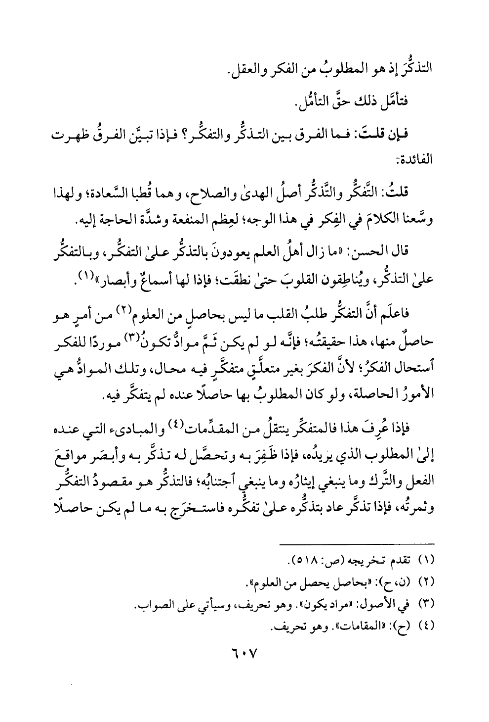 فاعلم ن التفكر طلب القلب ما ليس بحاصل من العلوم (2) من أمر هو