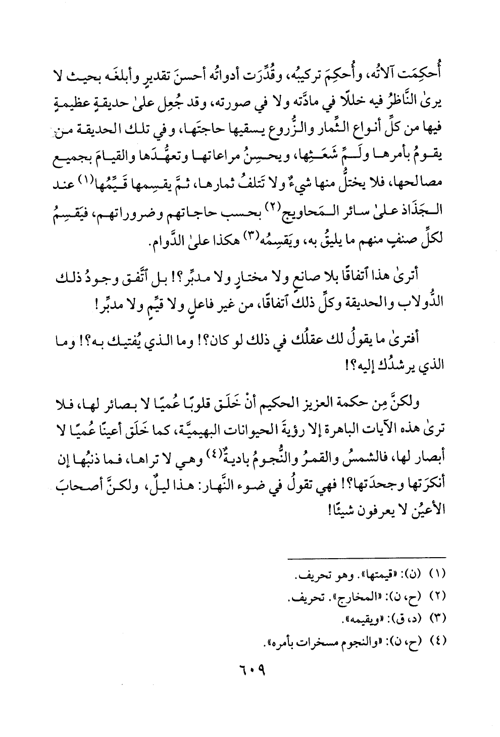 الدولاب وا لحديقة وكل ذلك آتفاقا، من غير فاعل ولا قيم ولا مدبر!