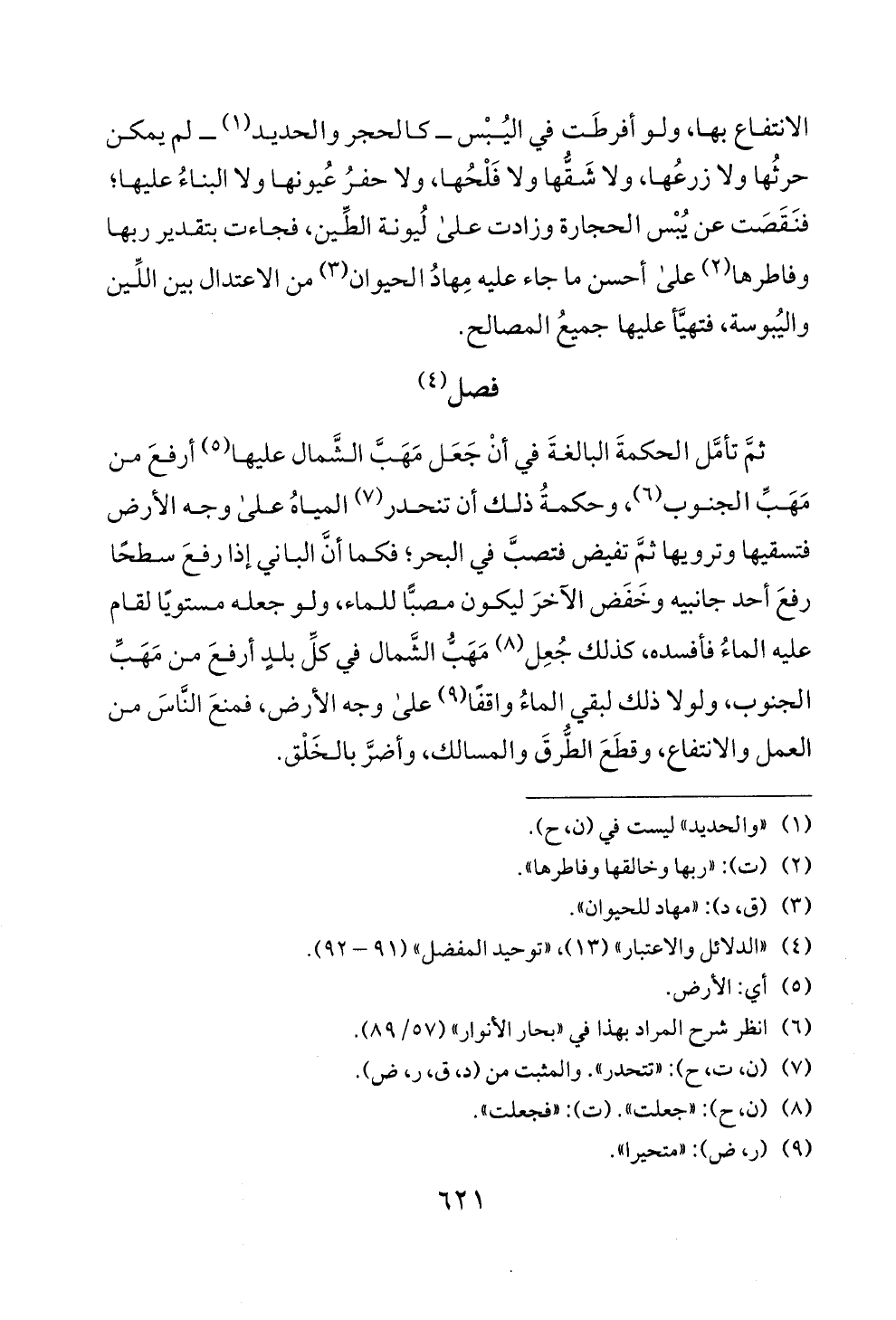 (4) " الدلائل والاعتبار" (13)، " توحيد المفضل " (1 9 - 92).