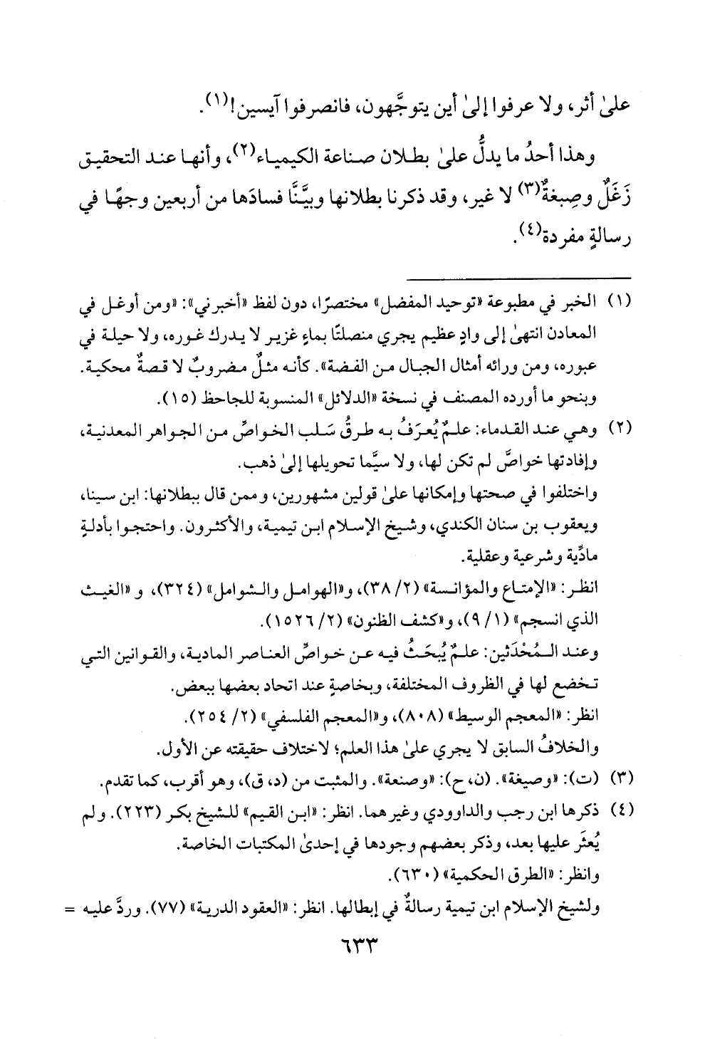 وهذا أحد ما يدل على بطلان صناعة الكيمياء (2)، و نها عند التحقيق