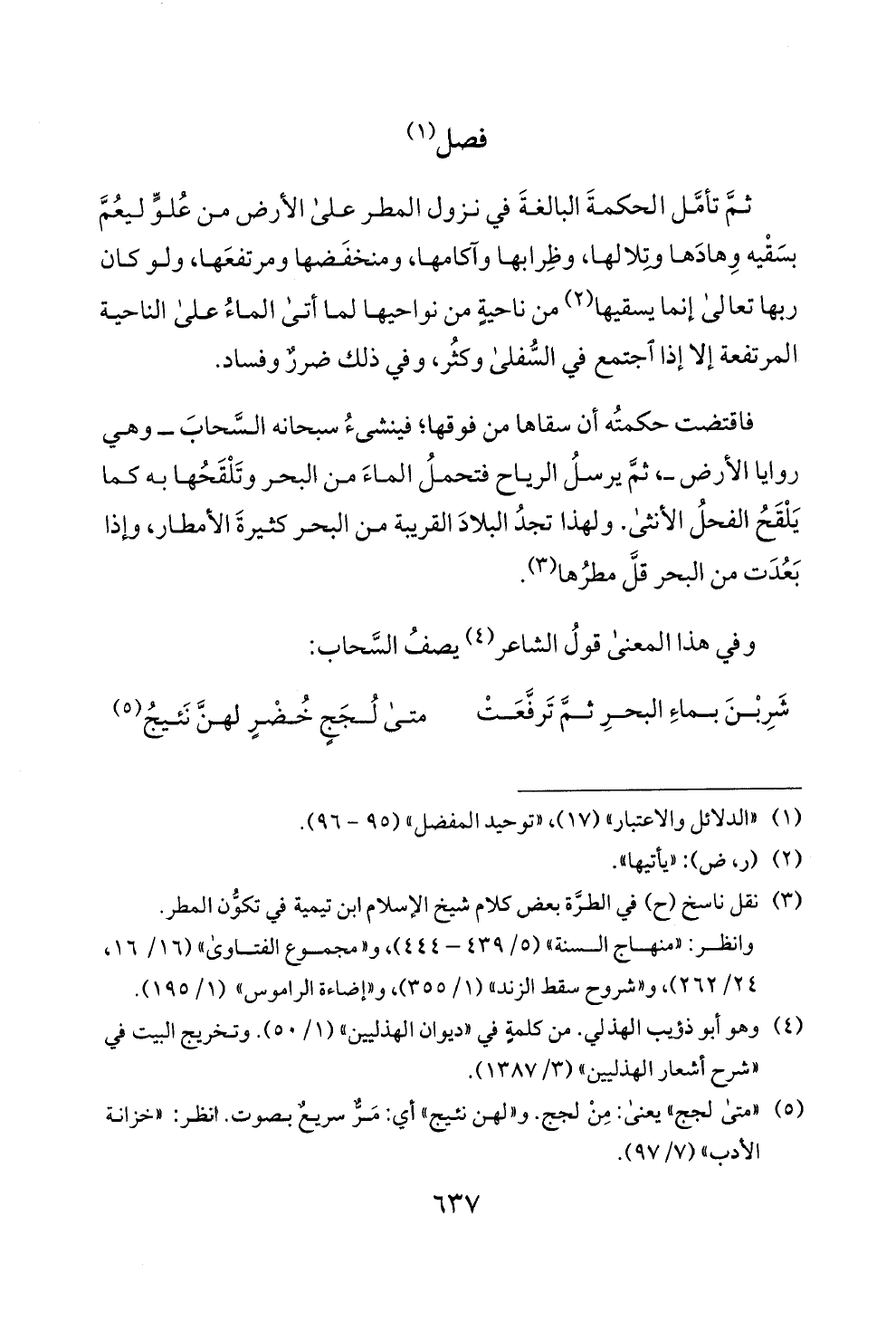 (3) نقل ناسخ (ح) في الطرة بعض كلام شيخ الاسلام ابن تيمية في تكون المطر.