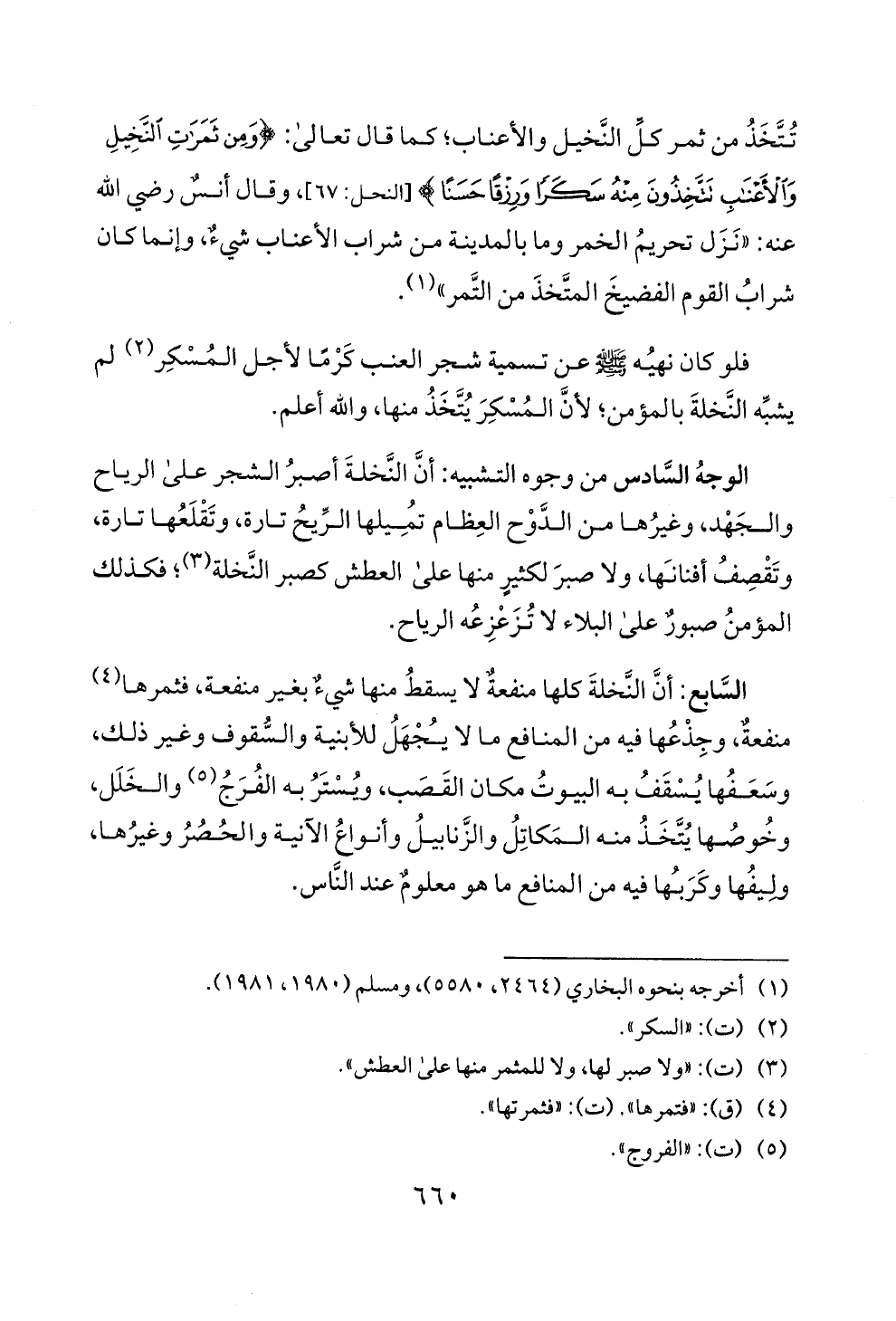 الوجه السادس من وجوه التشبيه: ان النخلة أصبر الشجر على الرياج