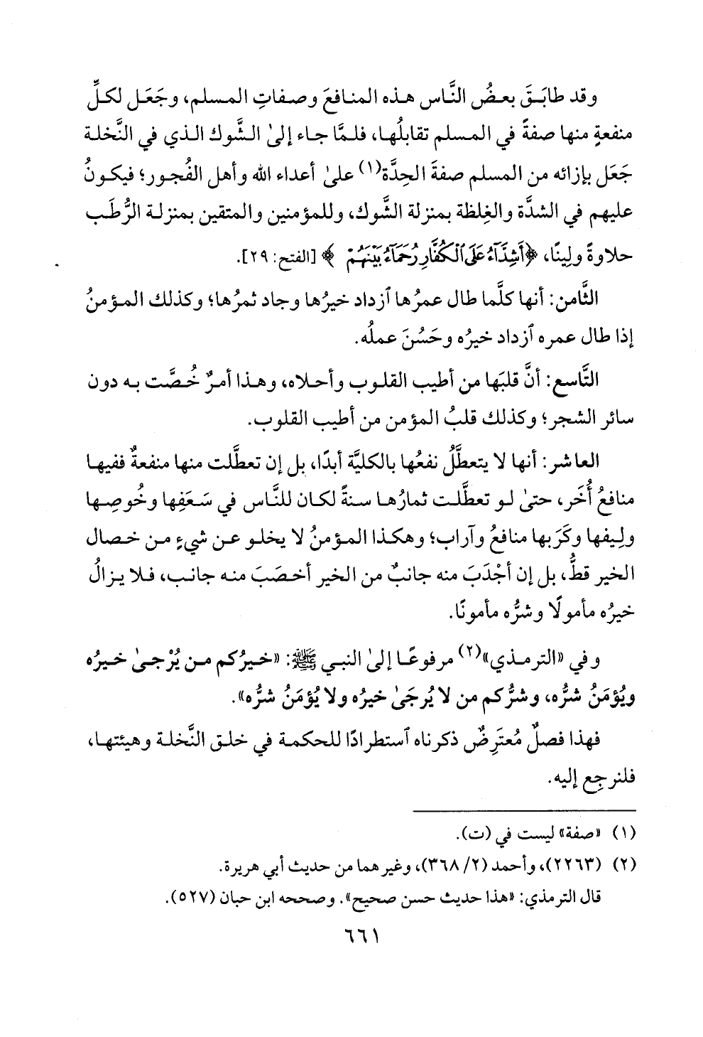 منفعة منها صفة في المسلم تقابلها، فلما جاء إلى الشوك الذي في النخلة