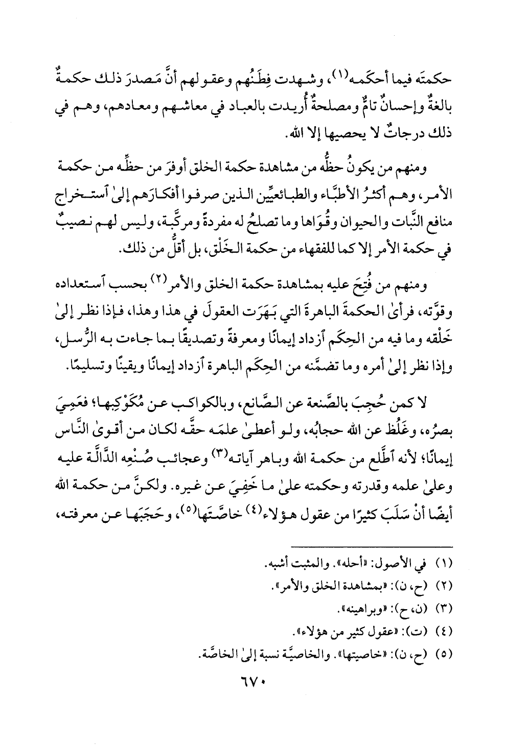 ومنهم من يكون حظه من مشاهدة حكمة الخلق أوفر من حظه من حكمة