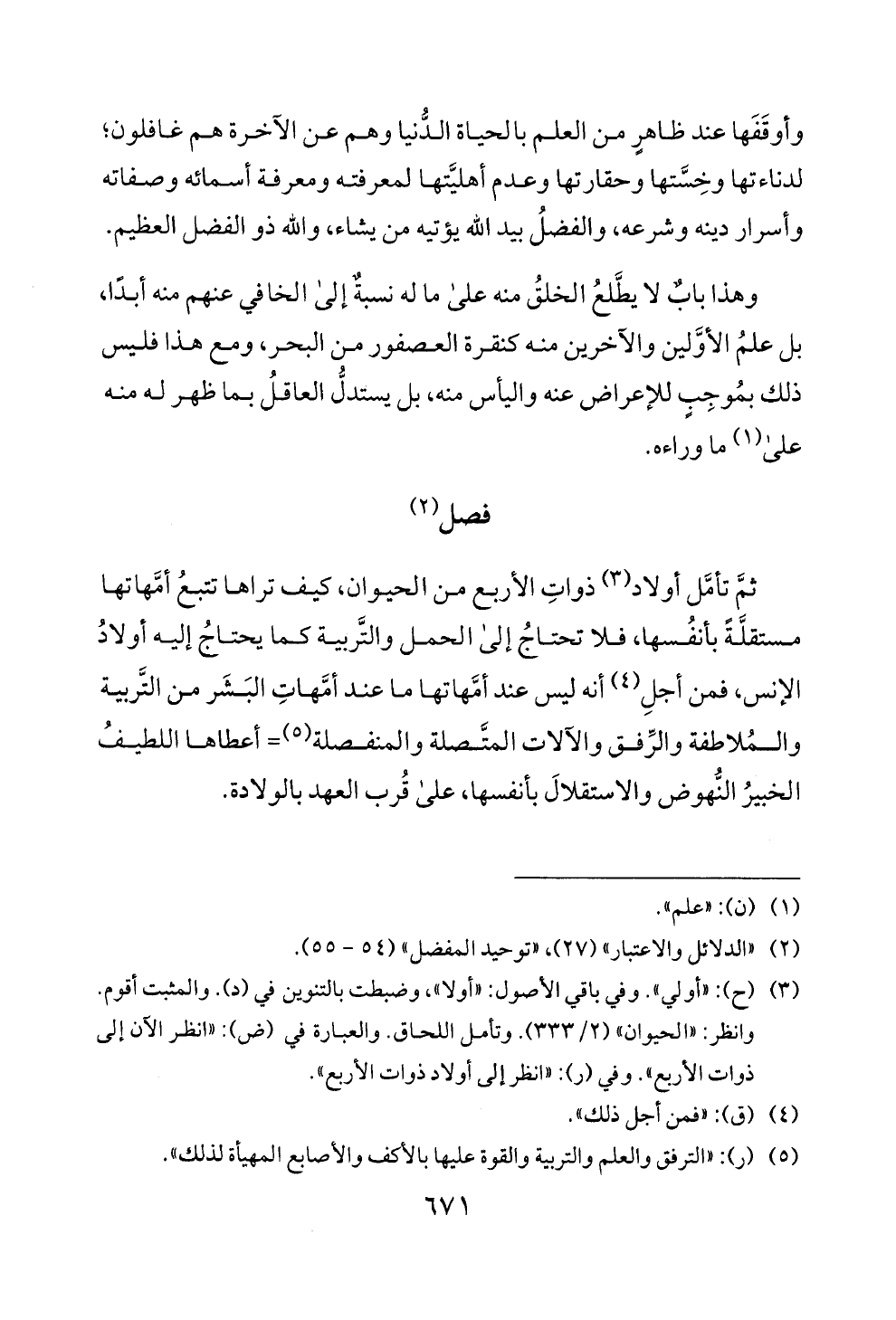 (2) "الدلائل و [لاعتبار" (27)، "توحيد المفضل " (4 5 - 55).