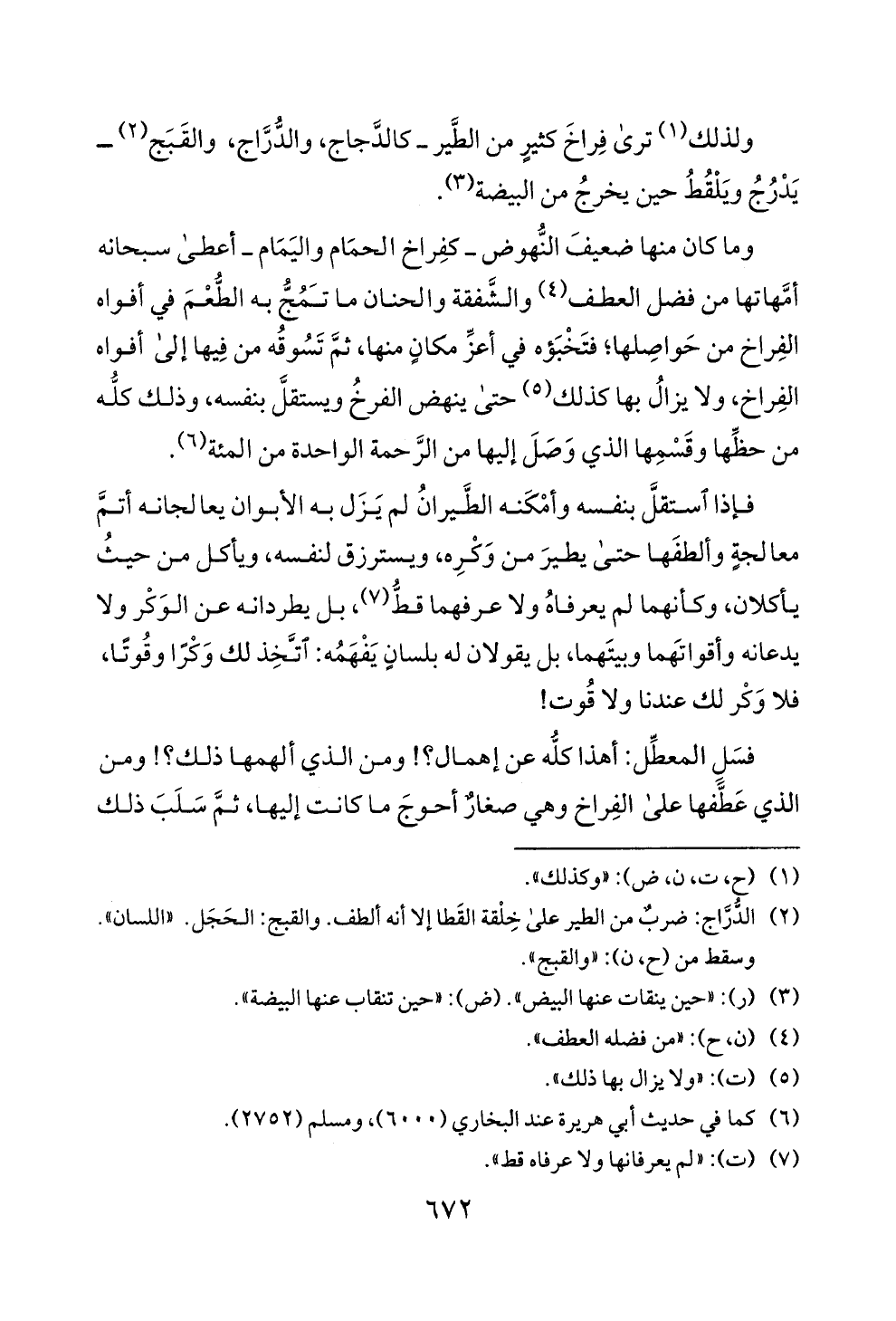 (3) (ر): "حين ينقات عنها البيض ". (ض): "حين تنقاب عنها البيضة ".