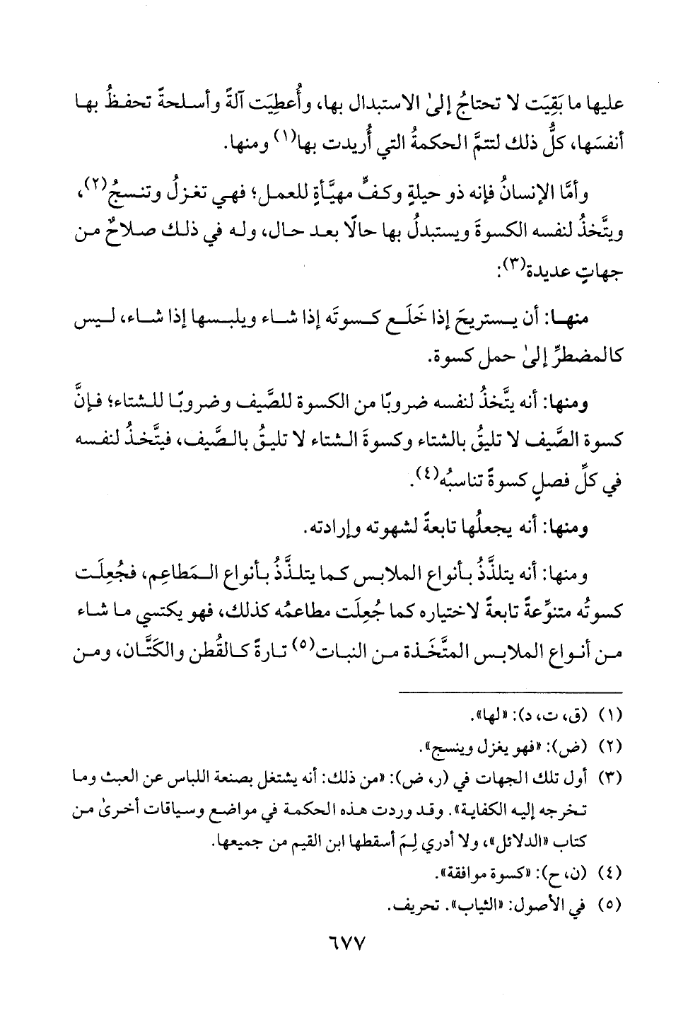 (3) اول تلك ا لجهات في (ر، ض): "من ذلك: انه يشتغل بصنعة اللباس عن العبث وما