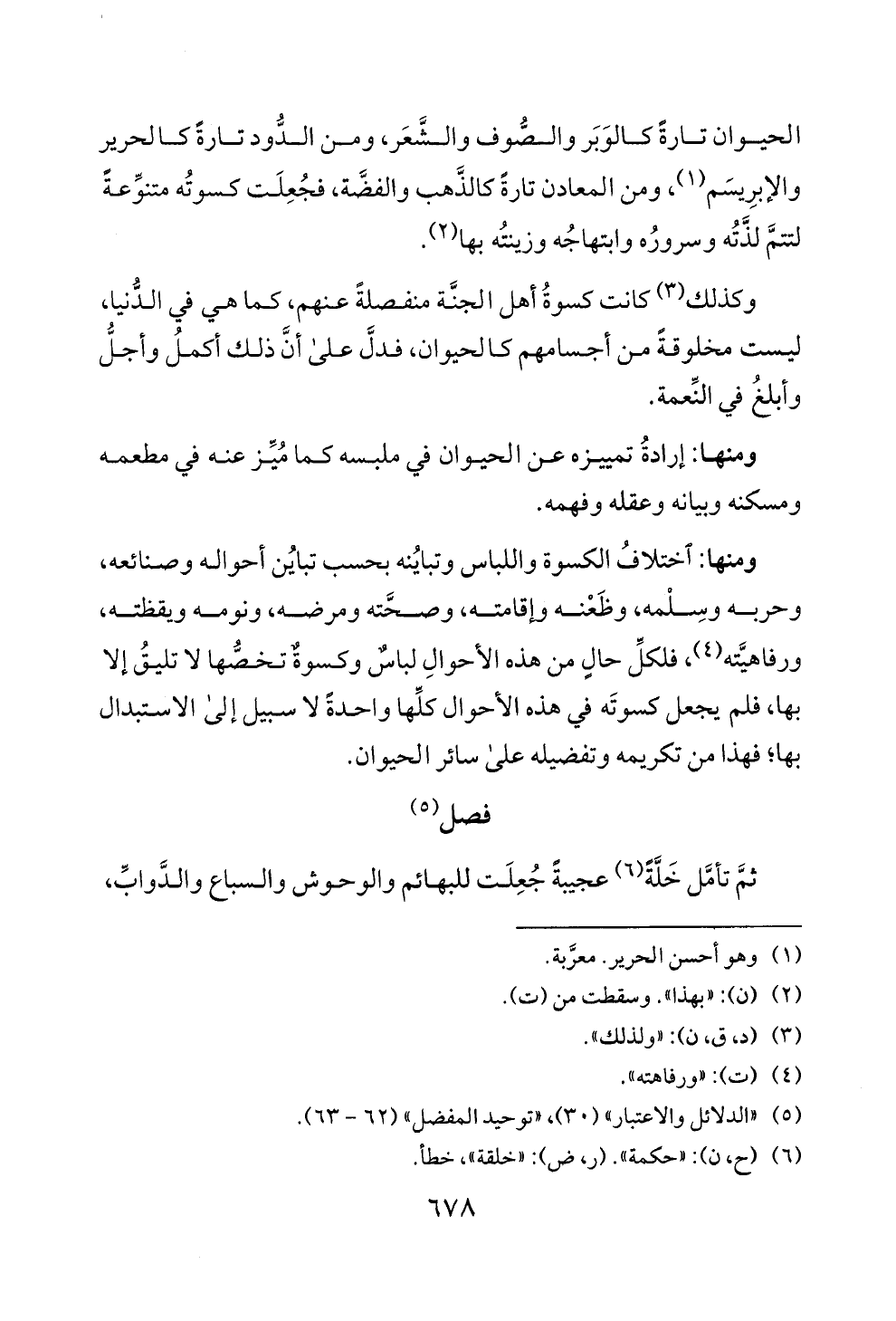 (5) "الدلائل والاعتبار" (0 3)، "توحيد المفضل " (62 - 63).