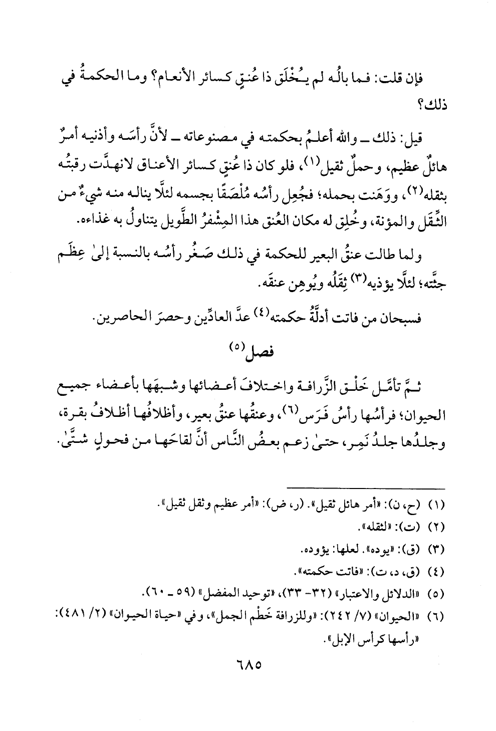 (6) " ا لحيوان " (7/ 2 4 2): " وللزرافة خطم ا لجمل "، وفي " حياة [لحيوان " (2/ 481):