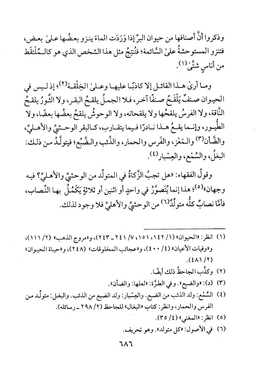 وقول الفقهاء: "هل تجب الزكاة في المتولد من الوحشي والاهلي؟ فيه