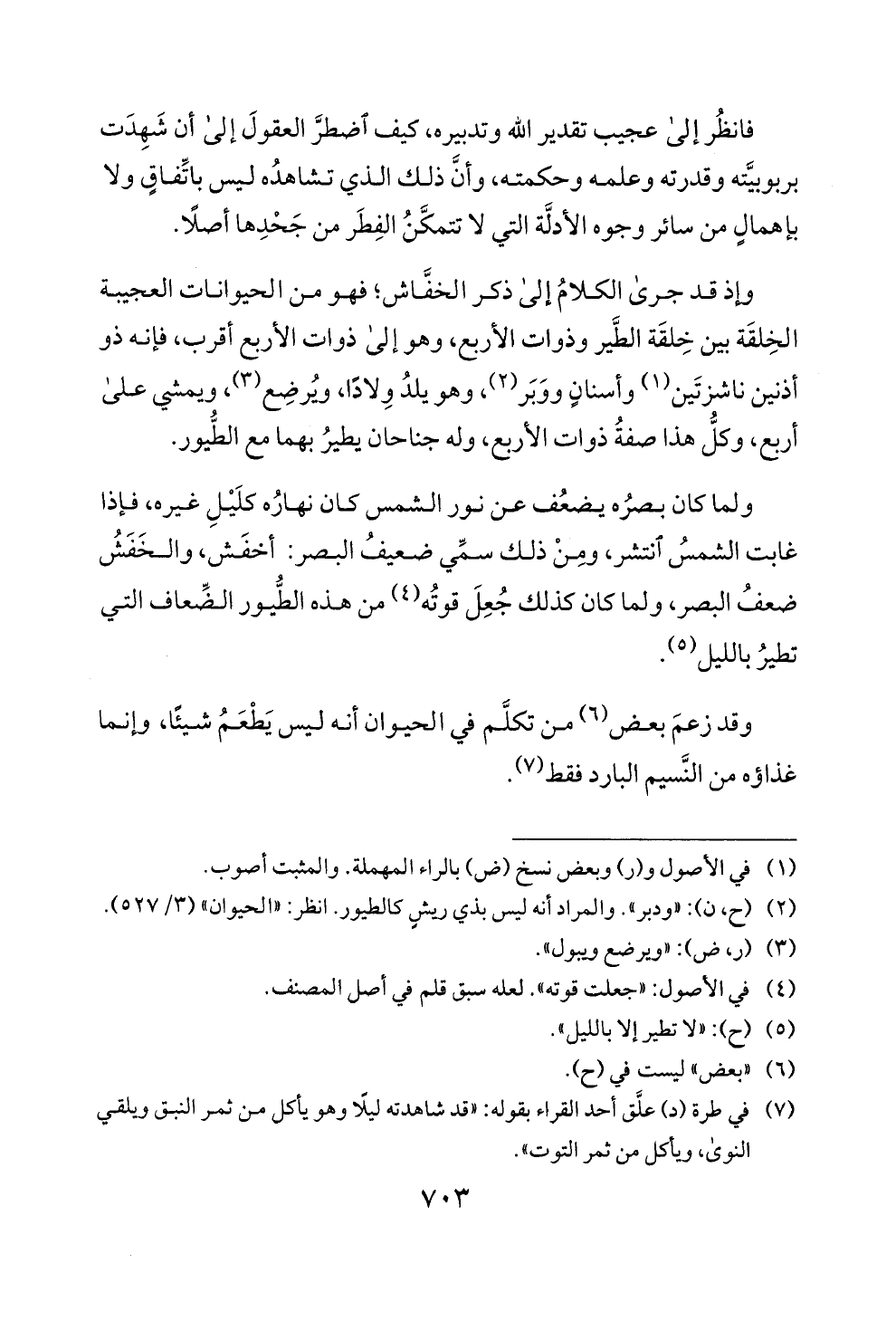 (2) (ح، ن): "ودبر". والمراد انه ليس بذي ريش كالطيور. انظر: " ا لحيوان " (3/ 27 5).