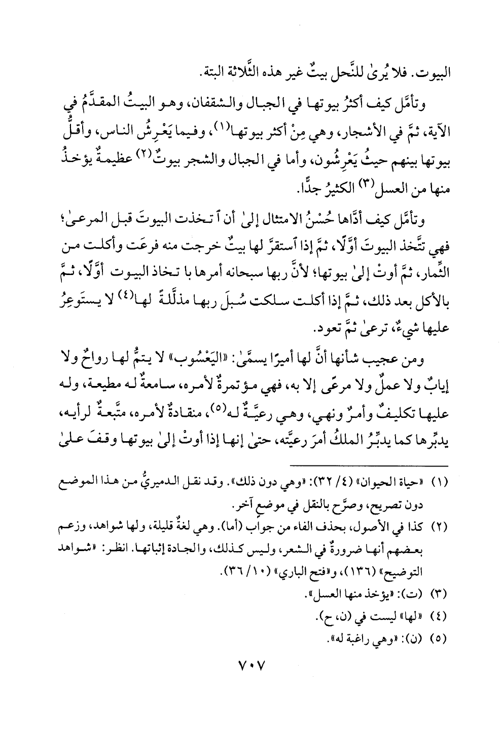 البيوت. فلا يرى للنحل بيت غير هذه الثلاثة البتة.