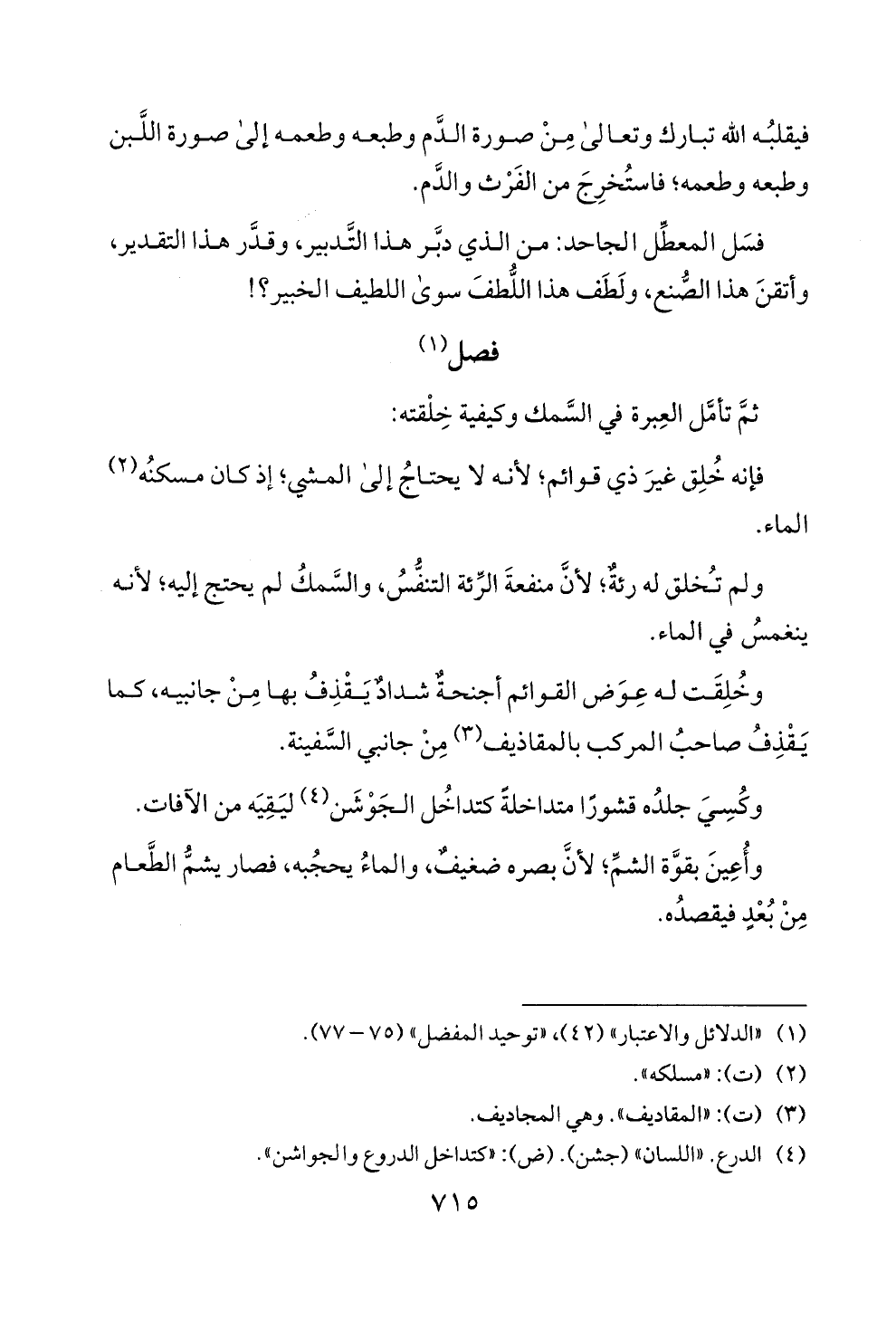 (1) "الدلائل والاعتبار" (2 4)، "توحيد المفضل " (75 - 77).
