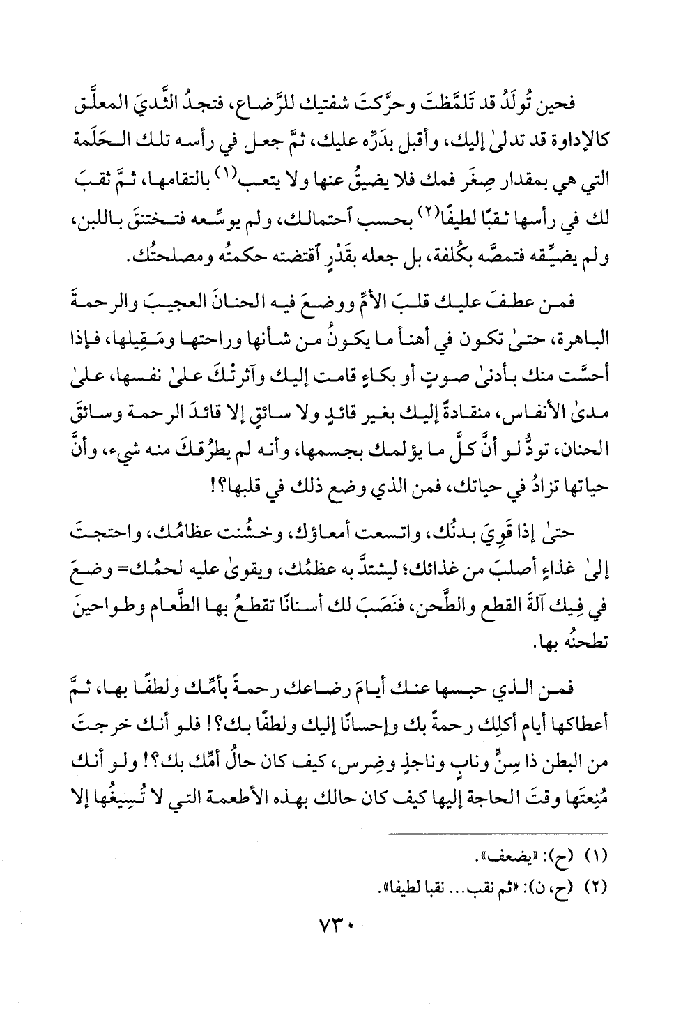 فمن الذي حبسها عنك أيام رضاعك رحمة بأمك ولطفا بها، ثم