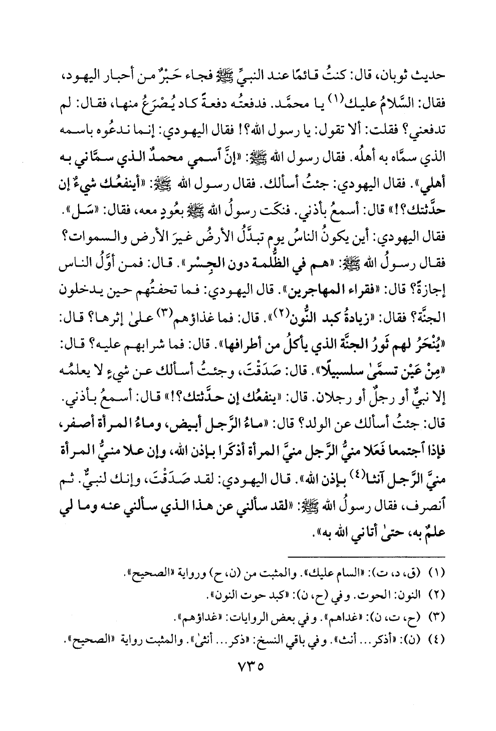 حديث ثوبان، قال: كنت قائما عند النبي! كفي! فجاء حبر من أحبار اليهود،