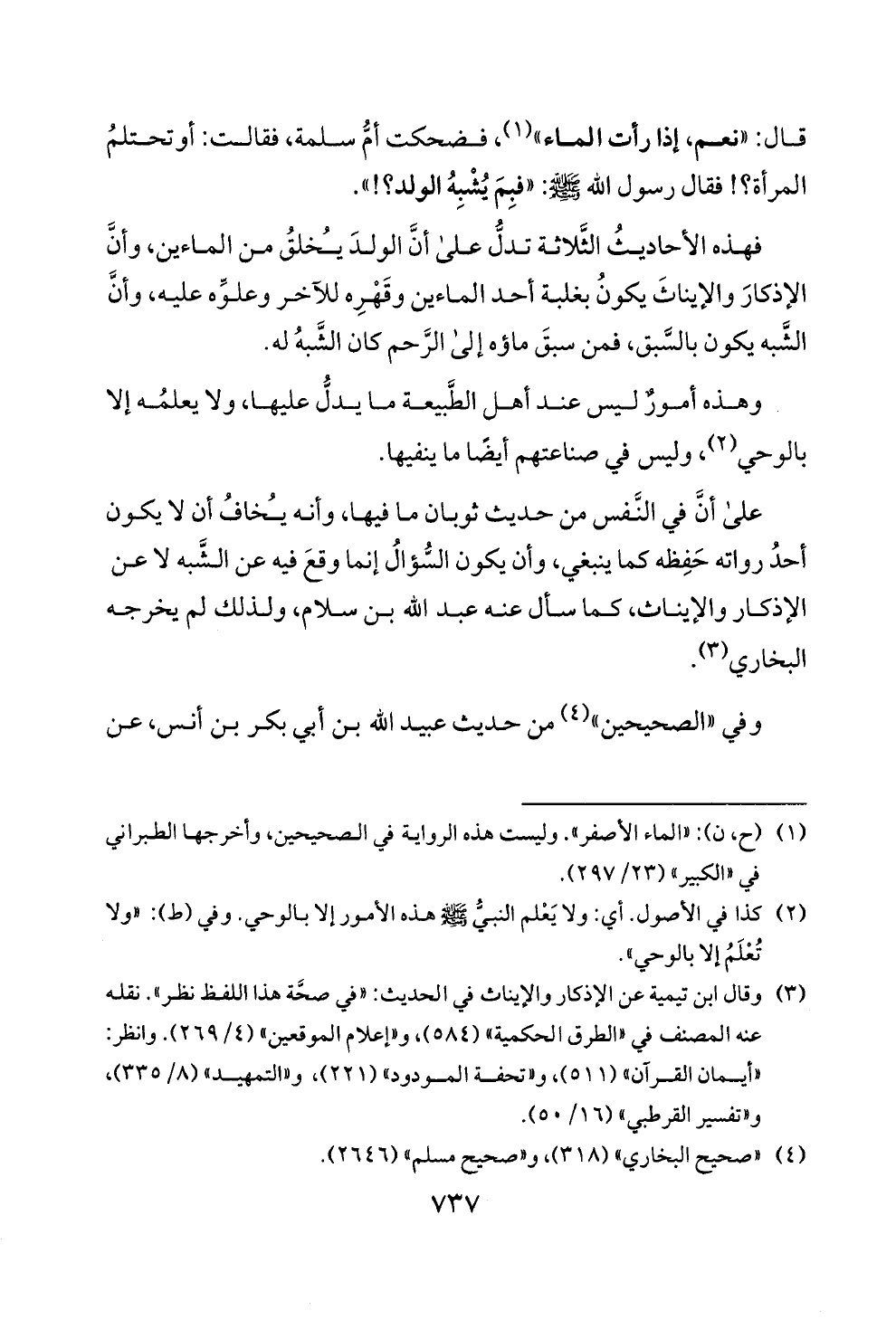 المرأة؟! فقال رسول الله ع! ي!: " فبم يشبه الولد؟! ".
