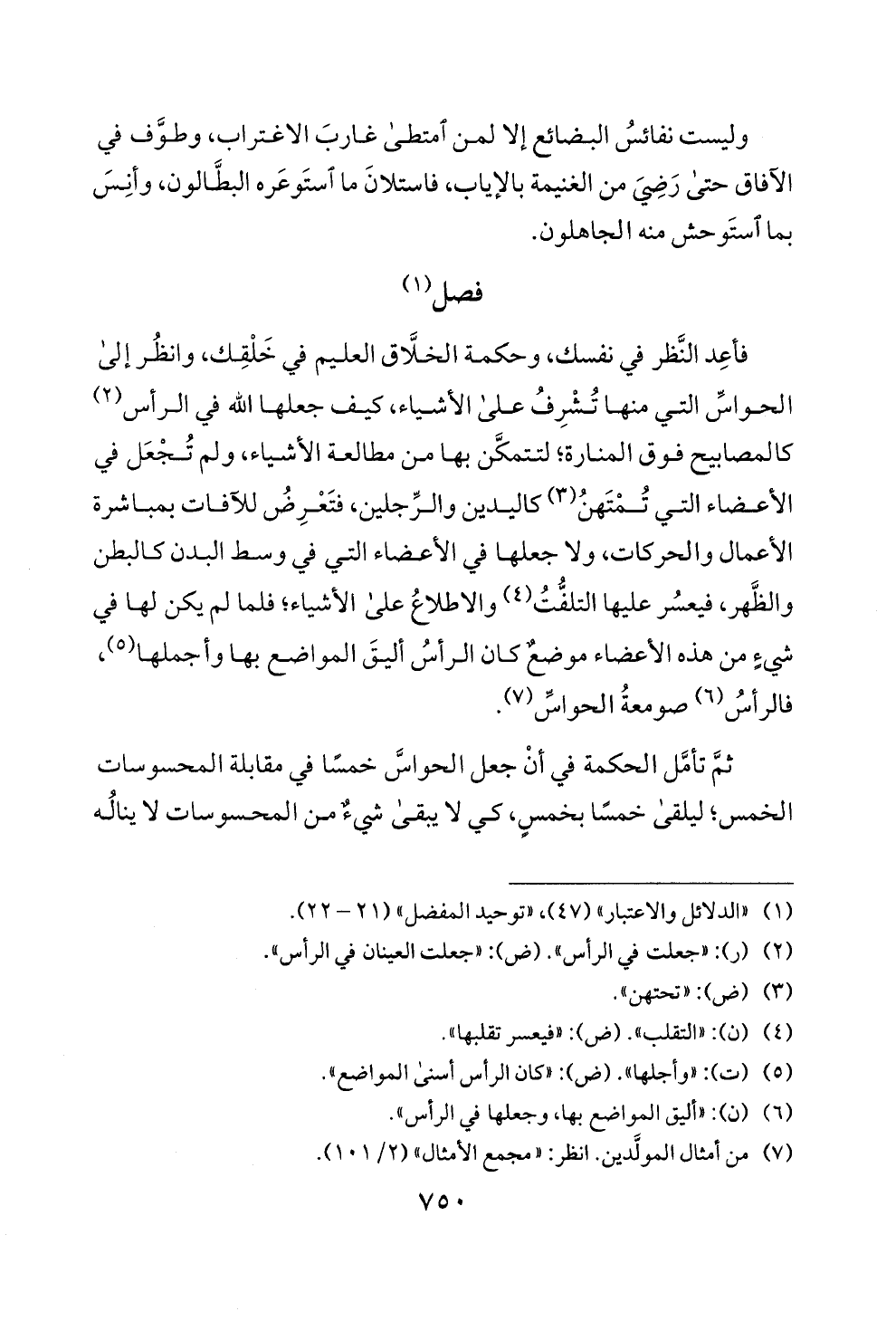 ثم تأمل الحكمة في أن جعل الحواس خمسا في مقابلة المحسوسات