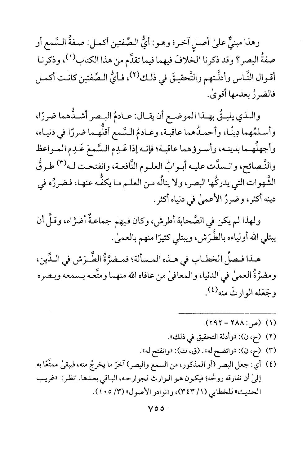 ولهذا لم يكن في الصحابة أطرش، وكان فيهم جماعة أضراء، وقل أ ن